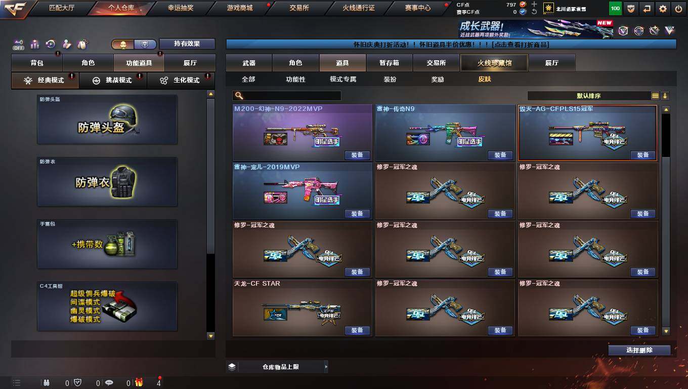 【皮肤】:幻神-宠儿-2021MVP*2,M200-幻神-N9-2022MVP*2,雷神-传奇N9,雷神-宠儿-2019MVP,修罗-冠军之魂*7