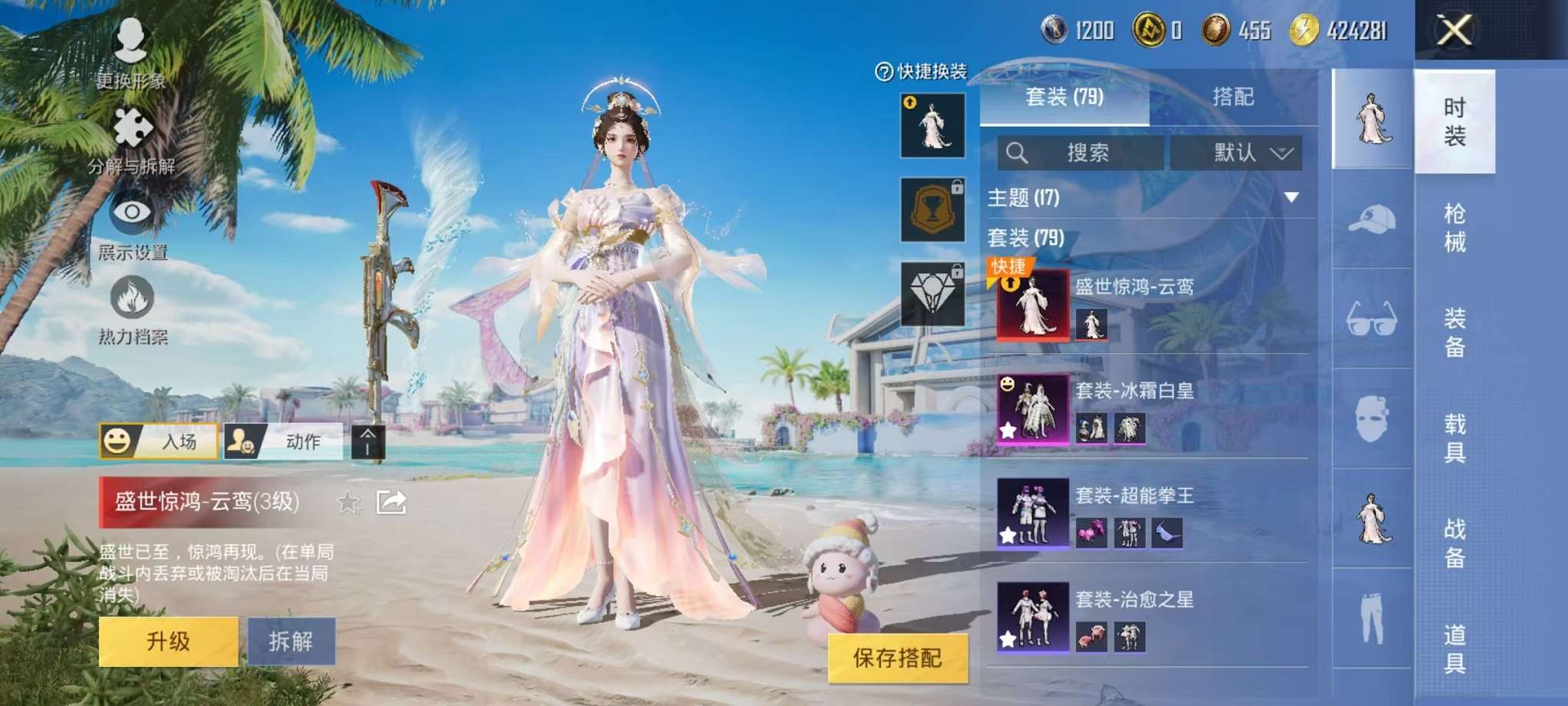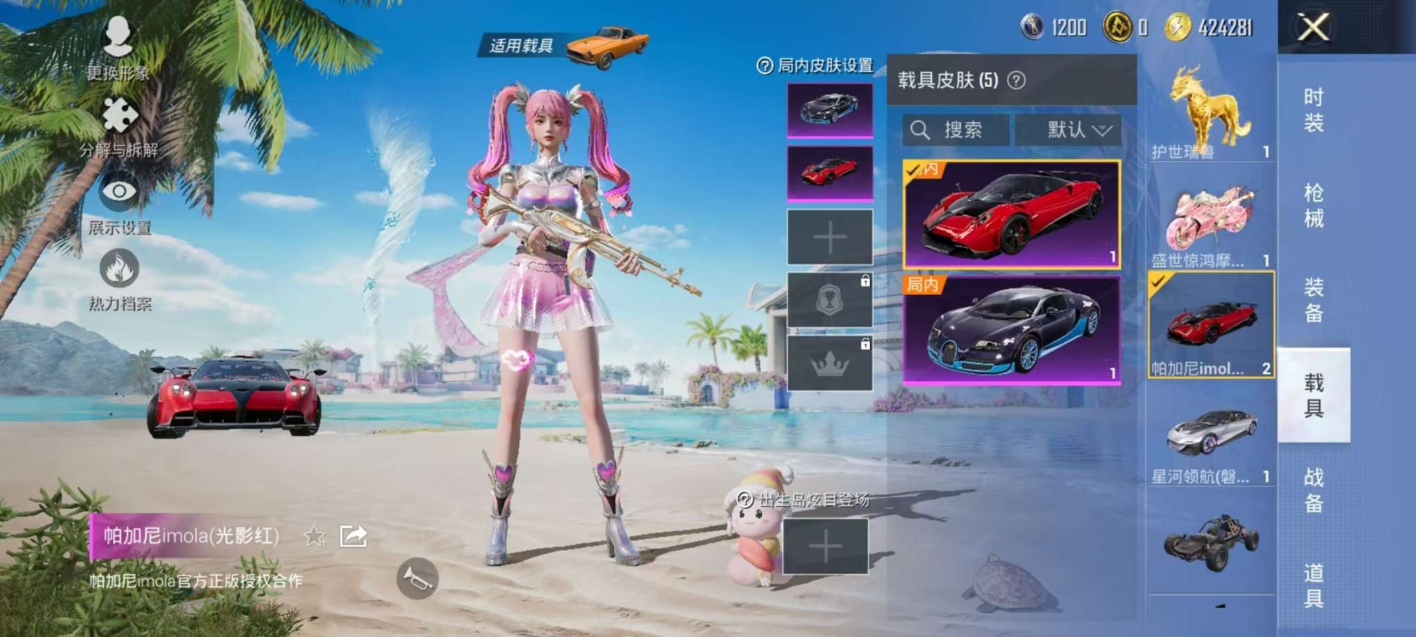 686-【女号3级盛世惊鸿5载具4粉装6特效枪可秒换绑】、安卓Q区-38285热力值-2印记-79套装-85枪皮、【1红装】、盛世惊鸿-云鸾(3级)【5载具】、布加迪威龙(海洋蓝)、星河领航(磐石银)、帕加尼imola(光影红)、盛世惊鸿摩托车、护世瑞兽【4粉装】、冰霜白皇、时空协奏·心弦、角色-千金淑猫、角色-萨利娅【6特效枪】、PKM-江南烟雨(2级)、DP-28-千金淑猫(5级)、Kar98K-巳巳如意(5级)、M762-鬼刀(1级)、Mk14-盛世惊鸿(1级)、SCAR-L-金蛇镇世(3