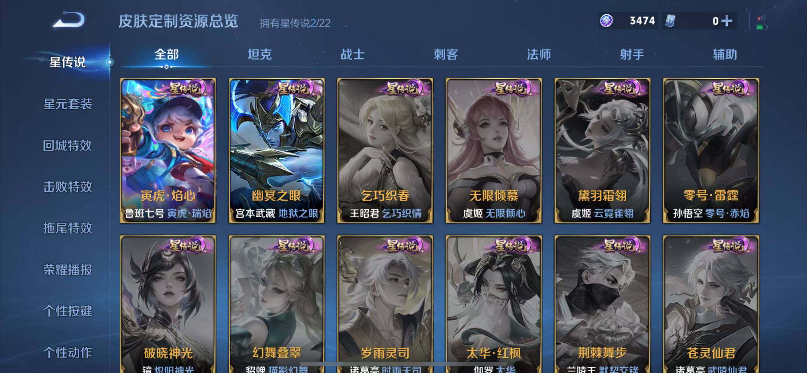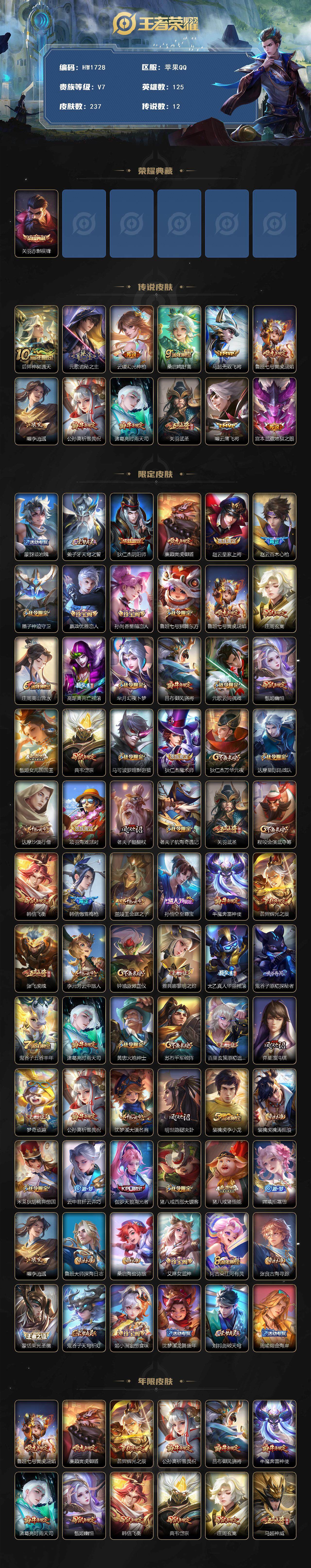 皮肤237 英雄125 至尊星耀 荣耀典藏1 传说12 其他皮肤95-iOS/V7-237皮肤1典藏12传说/赤影疾锋/李逍遥/祈雪灵祝/时雨天司/