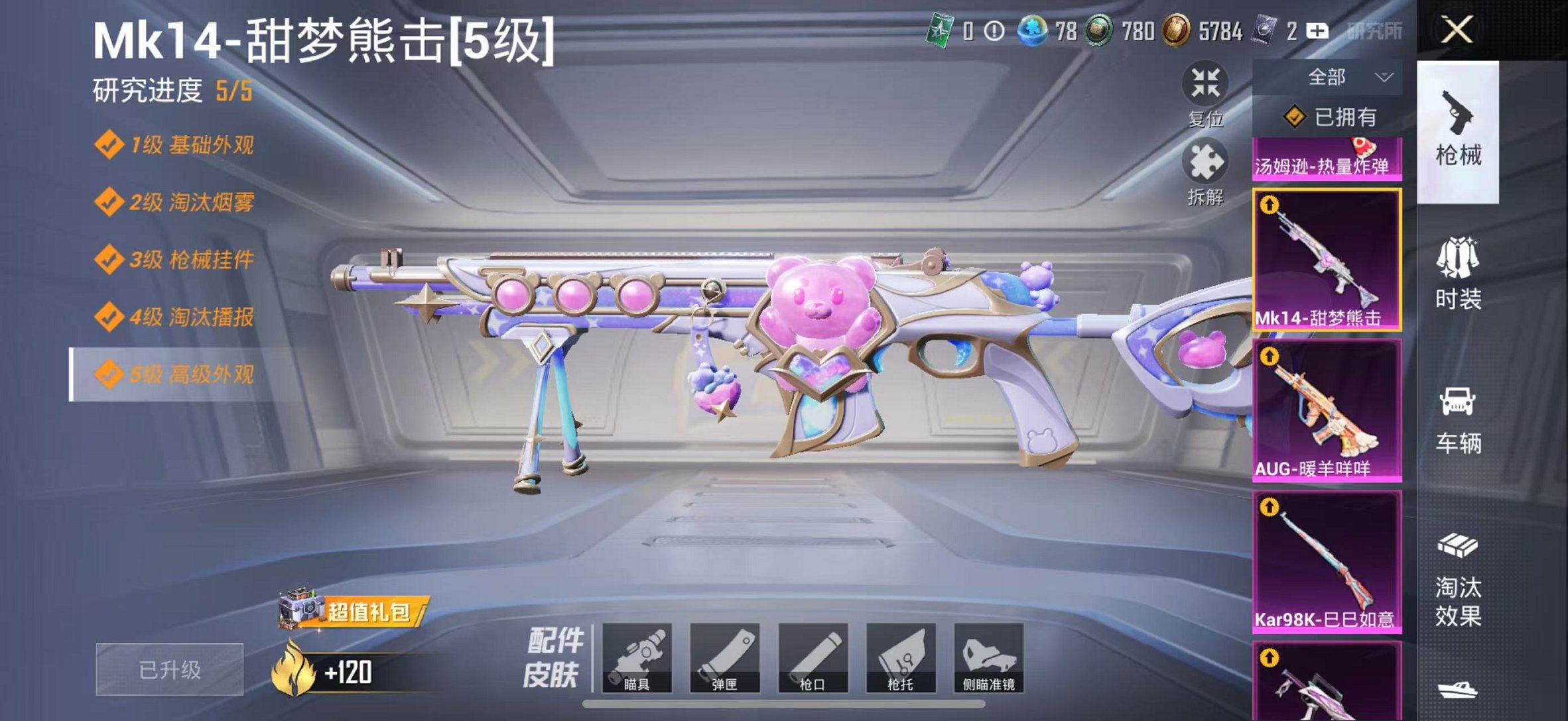 763-【连体号蓝粉螳螂8粉装11特效枪带王者317皮1典藏17传说、可秒换绑】、苹果Q区-73141热力值-4印记-173套装-245枪皮、【3稀有】、8号机、Mark.06、奇异狩猎者【8粉装】、宝贝奶油派、圣堂之誓、星之彼岸、恐龙拽拽、角色-凤凰座、一辉、星穹咏叹调、角色-金域紫灵、角色-绯穹魔姬【11特效枪】、M416-电玩时刻(5级)、M762-青锋波束(5级)、Mk14-甜梦熊击(5级)、汤姆逊-热量炸弹(5级)、Vector-绯穹魔姬(7级)、GROZA-镜光银凌(5级)、Kar9