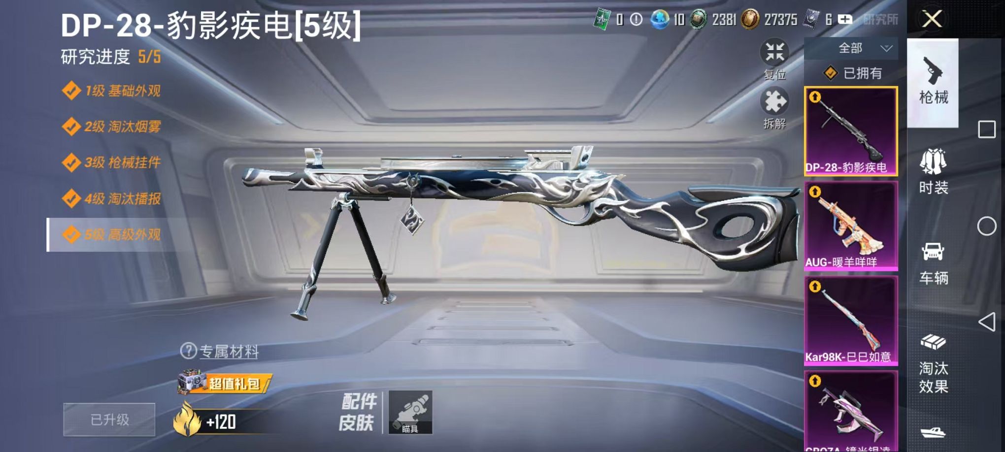 满级五爪蓝螳螂3粉装7特效枪1载具可秒换绑