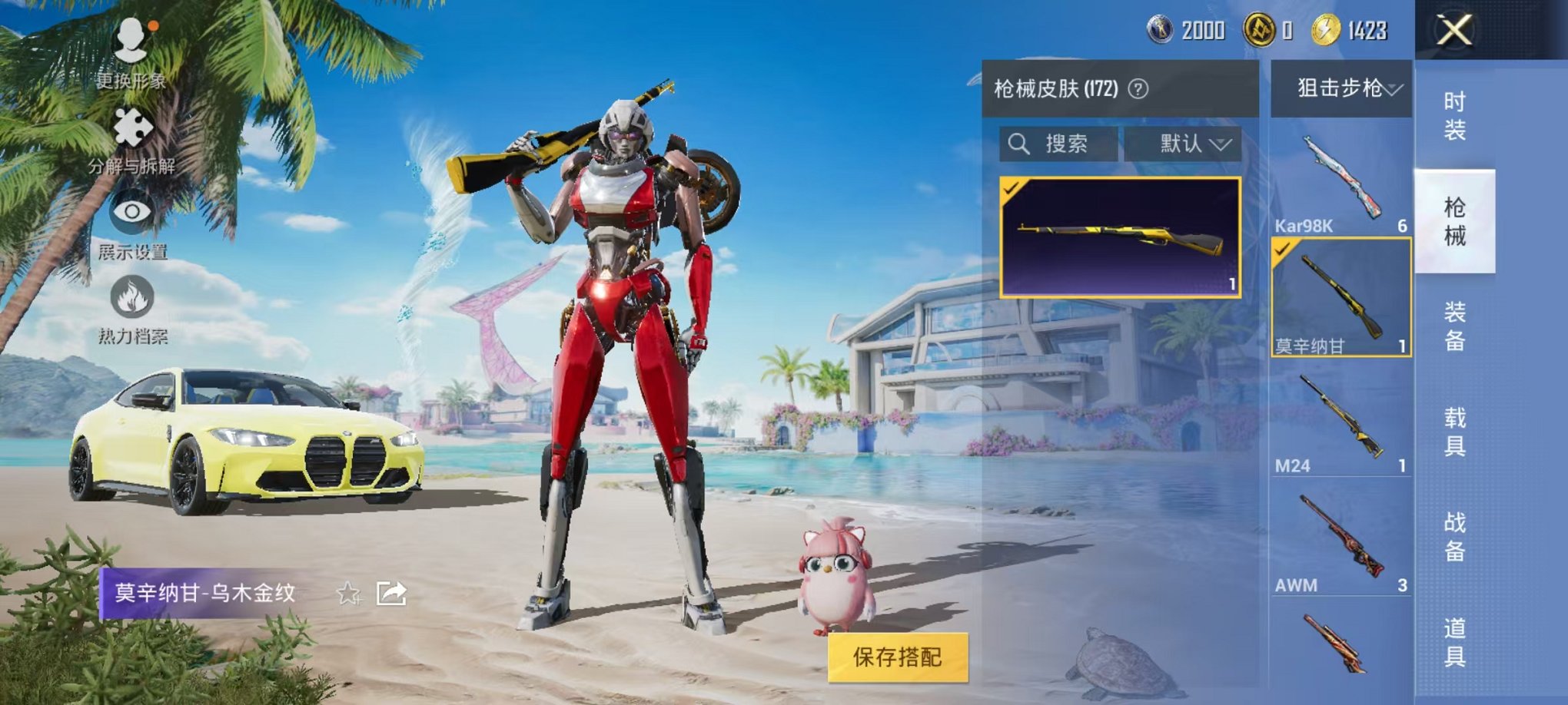 336-【蓝螳螂2粉装9特效枪1载具可秒换绑】、安卓Q区-49149热力值-9印记-101套装-172枪皮、【1载具】、宝马M4(圣保罗黄)【2稀有】、Mark.06、奇异狩猎者【2粉装】、阿尔茜、幻影战神【9特效枪】、SCAR-L-锦绣绵绵(5级)、P90-能量风暴(7级)、M416-电玩时刻(5级)、UMP45-量子极限(5级)、PKM-江南烟雨(4级)、Mk14-甜梦熊击(4级)、汤姆逊-热量炸弹(3级)、GROZA-镜光银凌(5级)、Kar98K-巳巳如意(5级)【32热门】、M416-