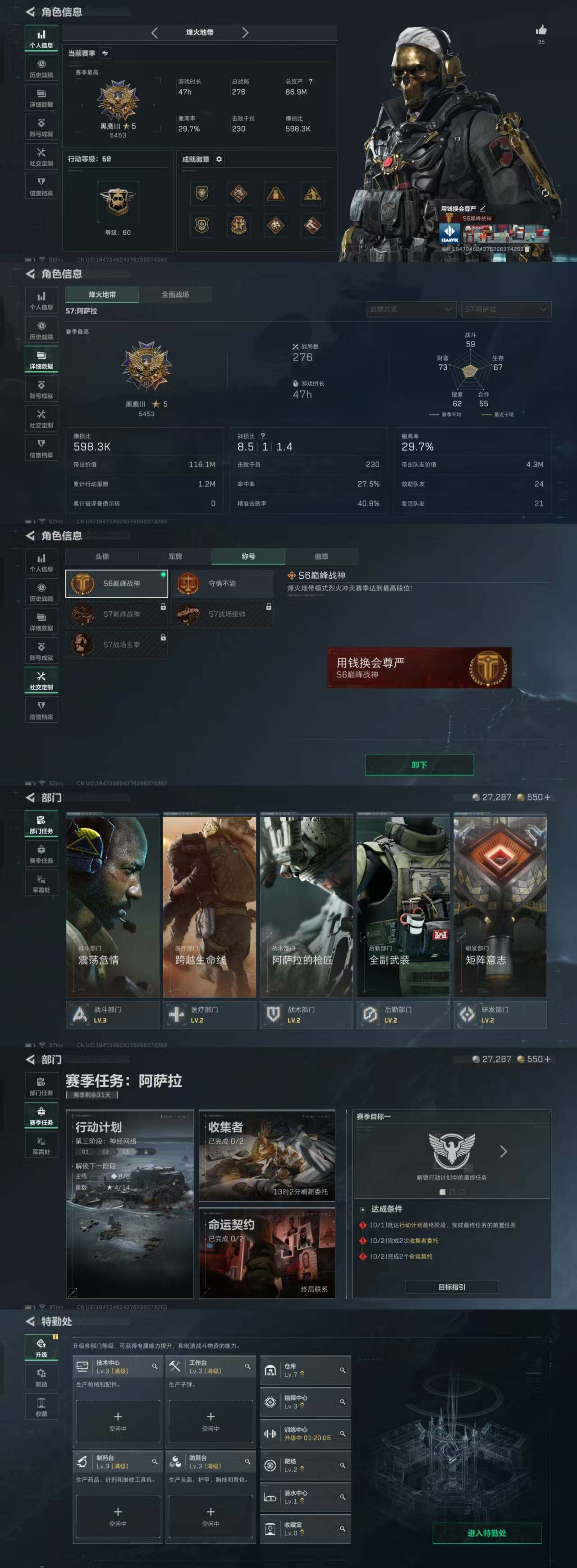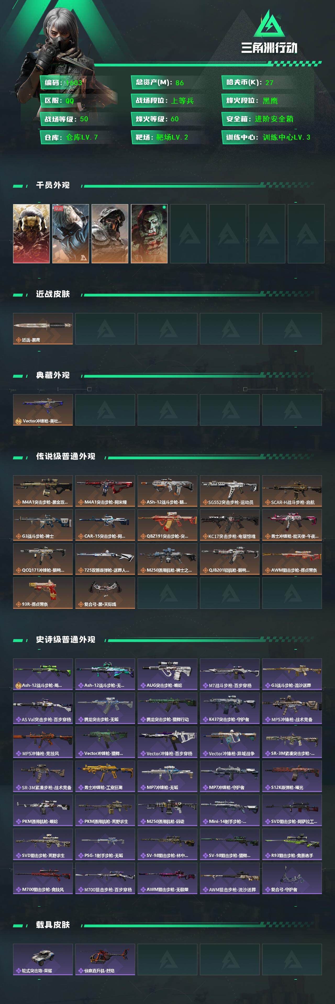 总资产(M):86M/哈夫币(K):27K/哈夫币(K):27K/传说枪皮数:18/全面战场等级:5