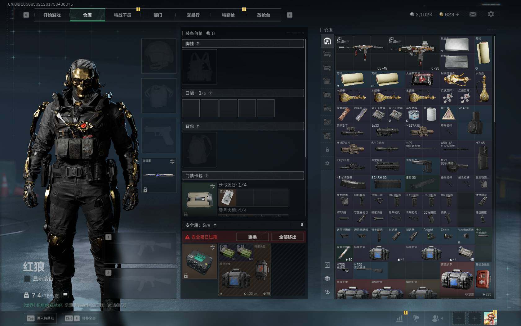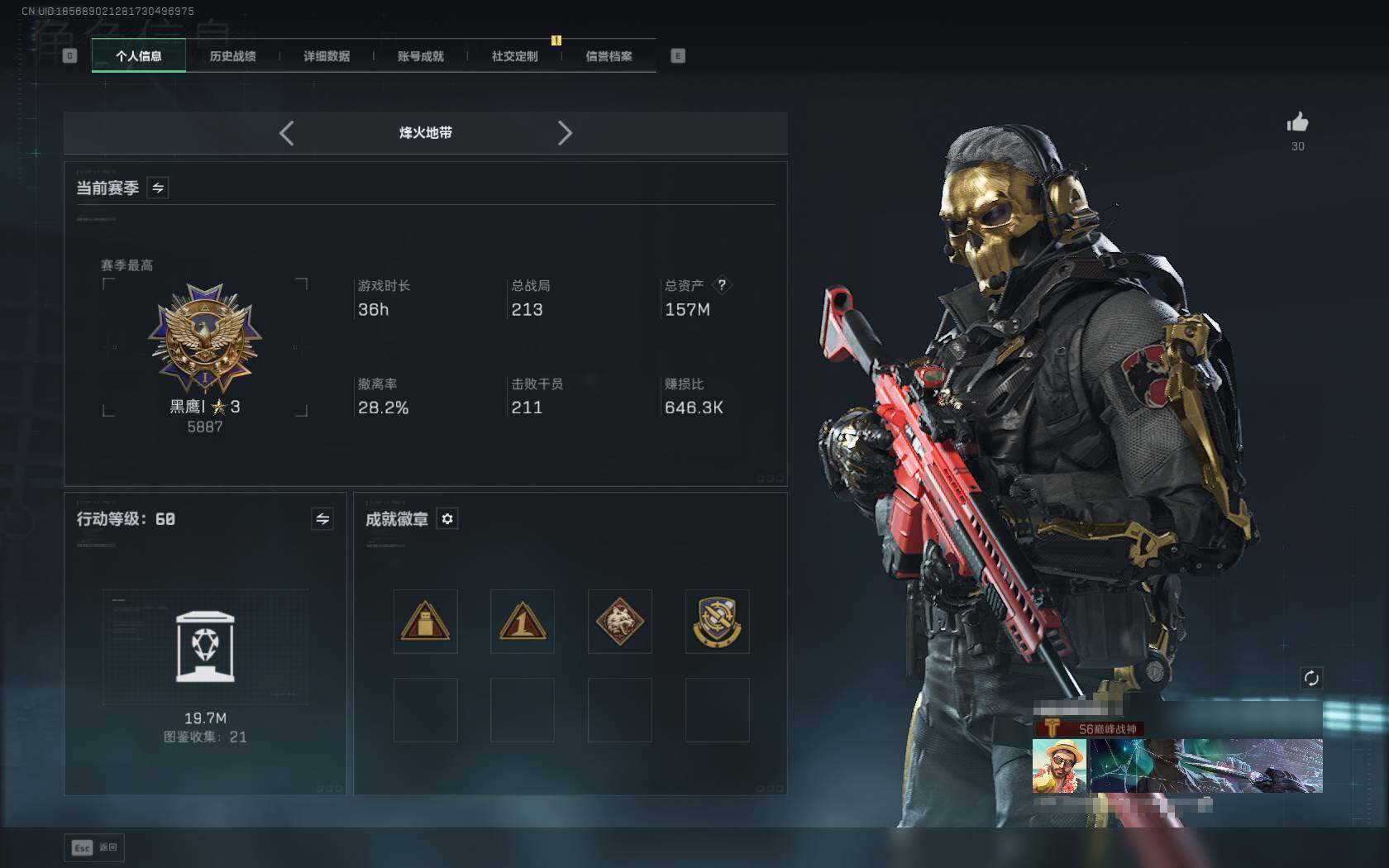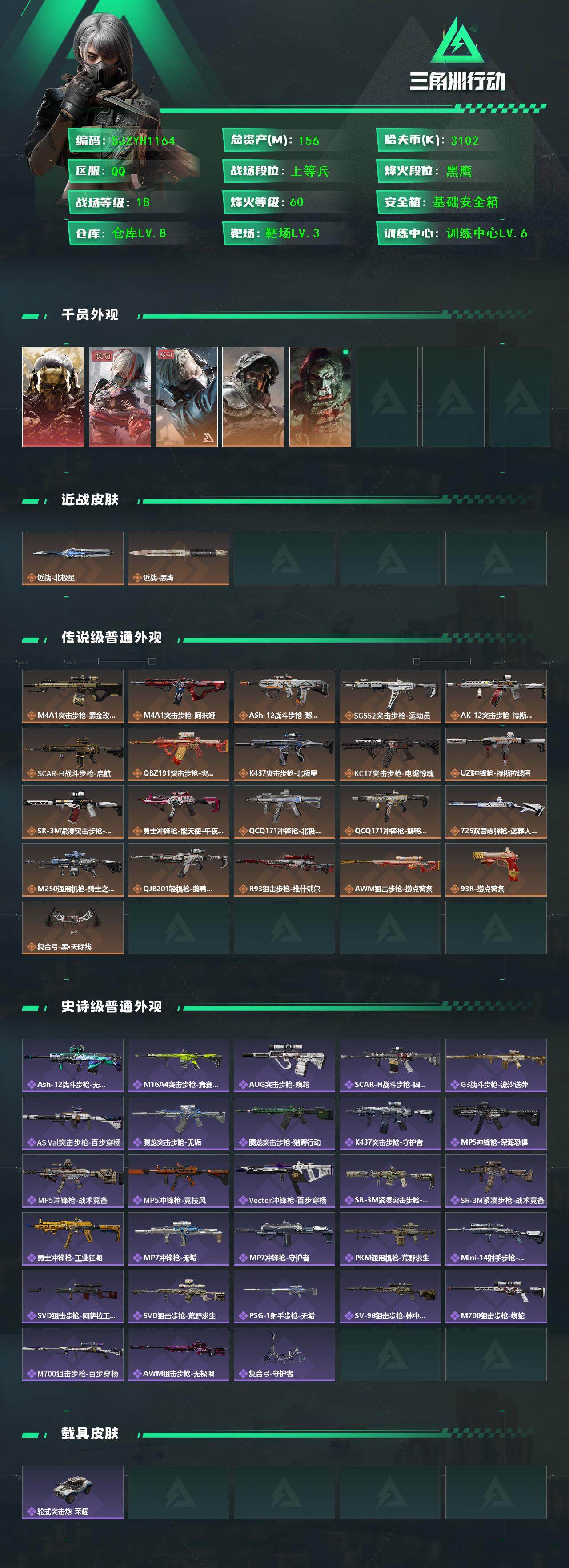 总资产(M):156M/哈夫币(K):3102K/哈夫币(K):3102K/全面战场等级:18_段位