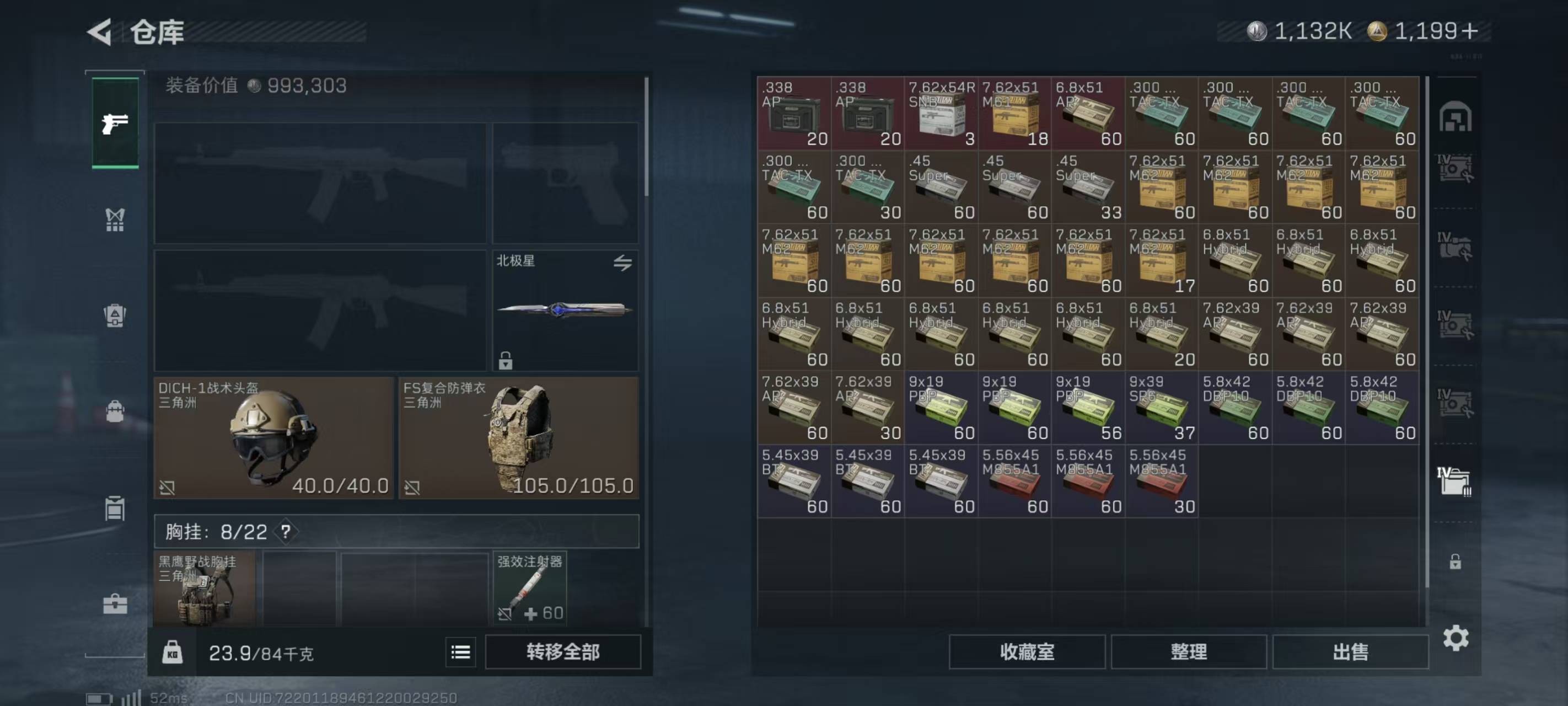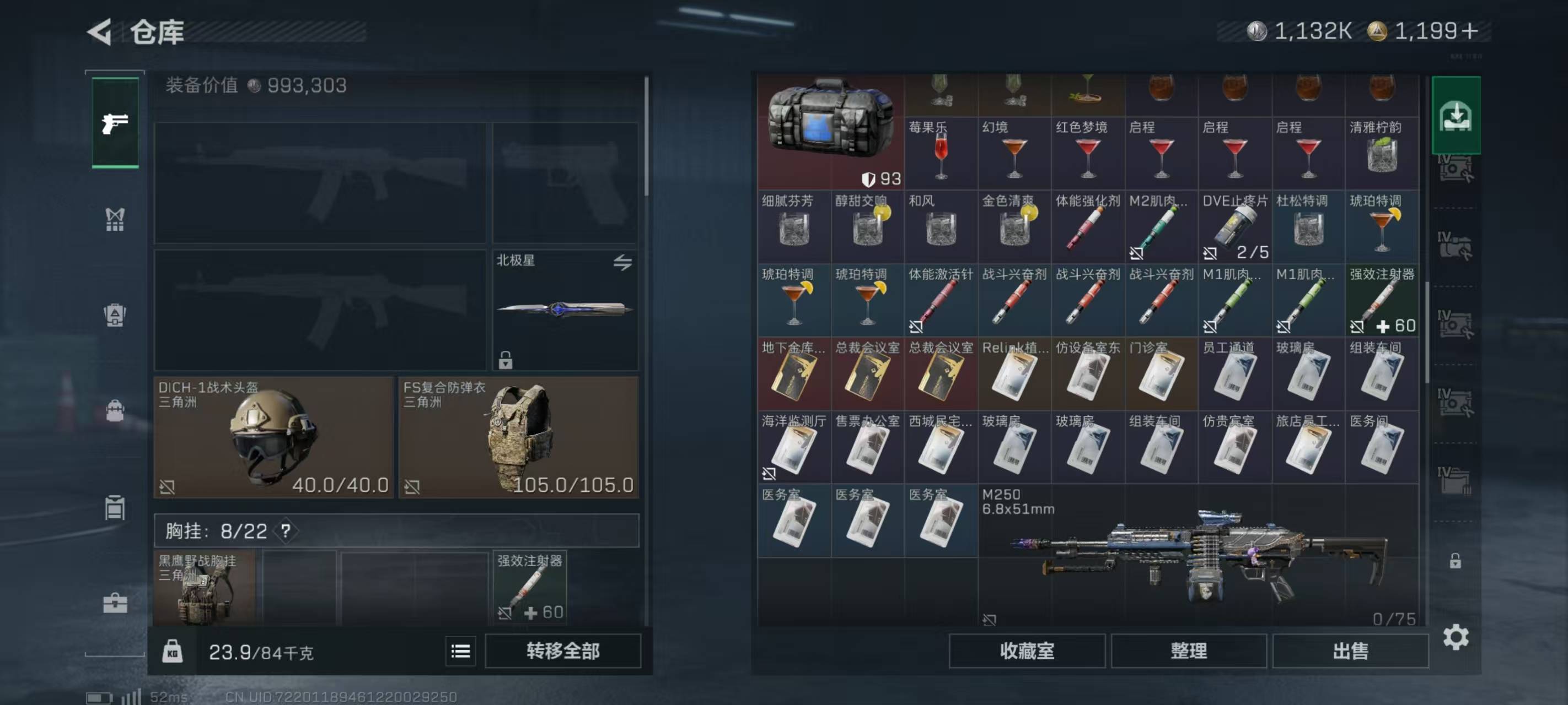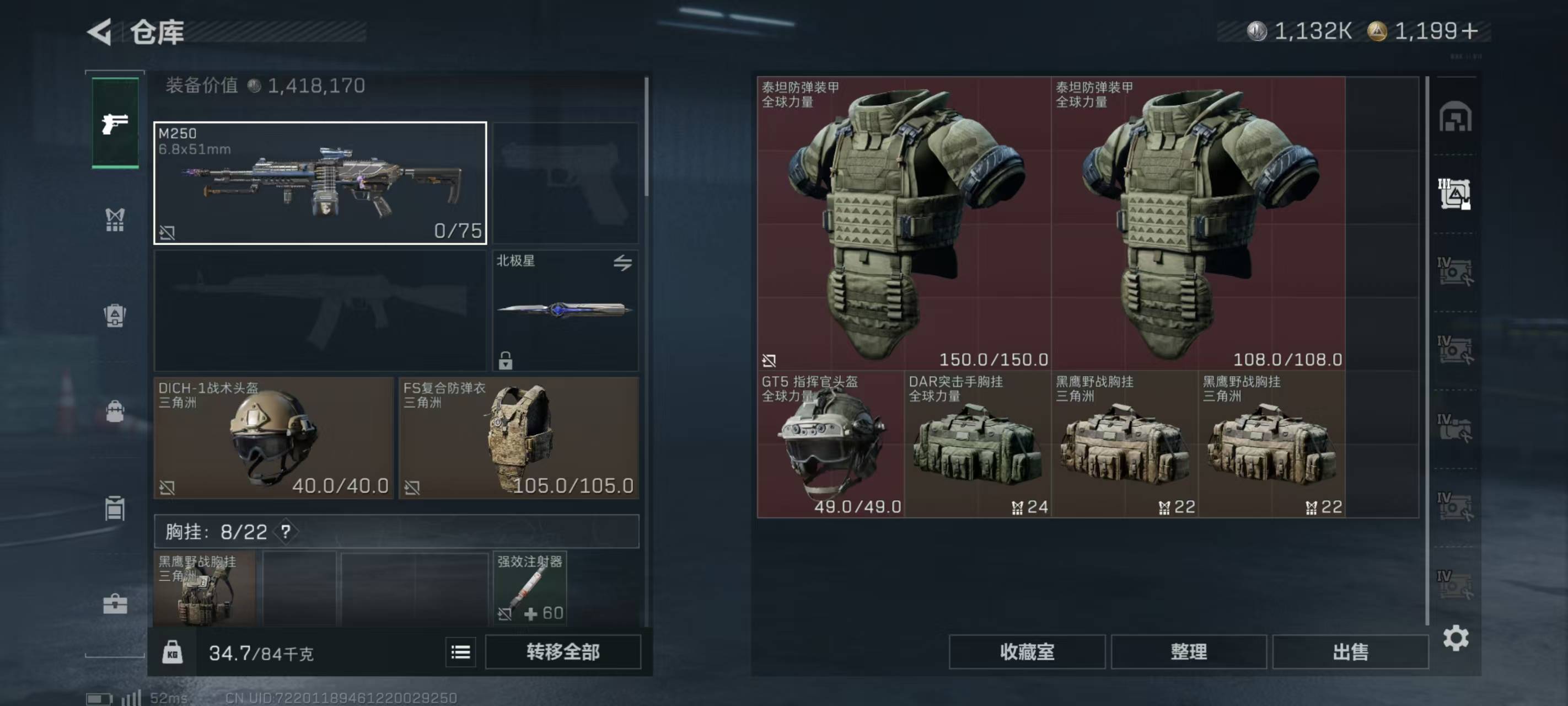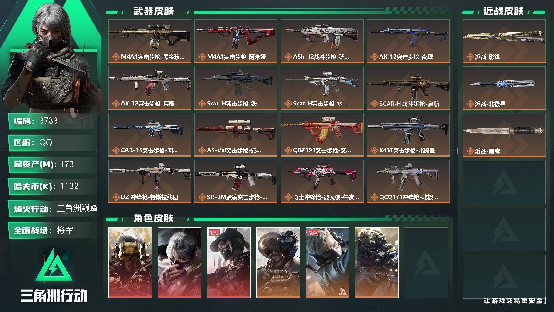 总资产173.4m 流动资产139.2m 哈夫币1132k 三角券 1199 2刀皮 3红皮 5金皮