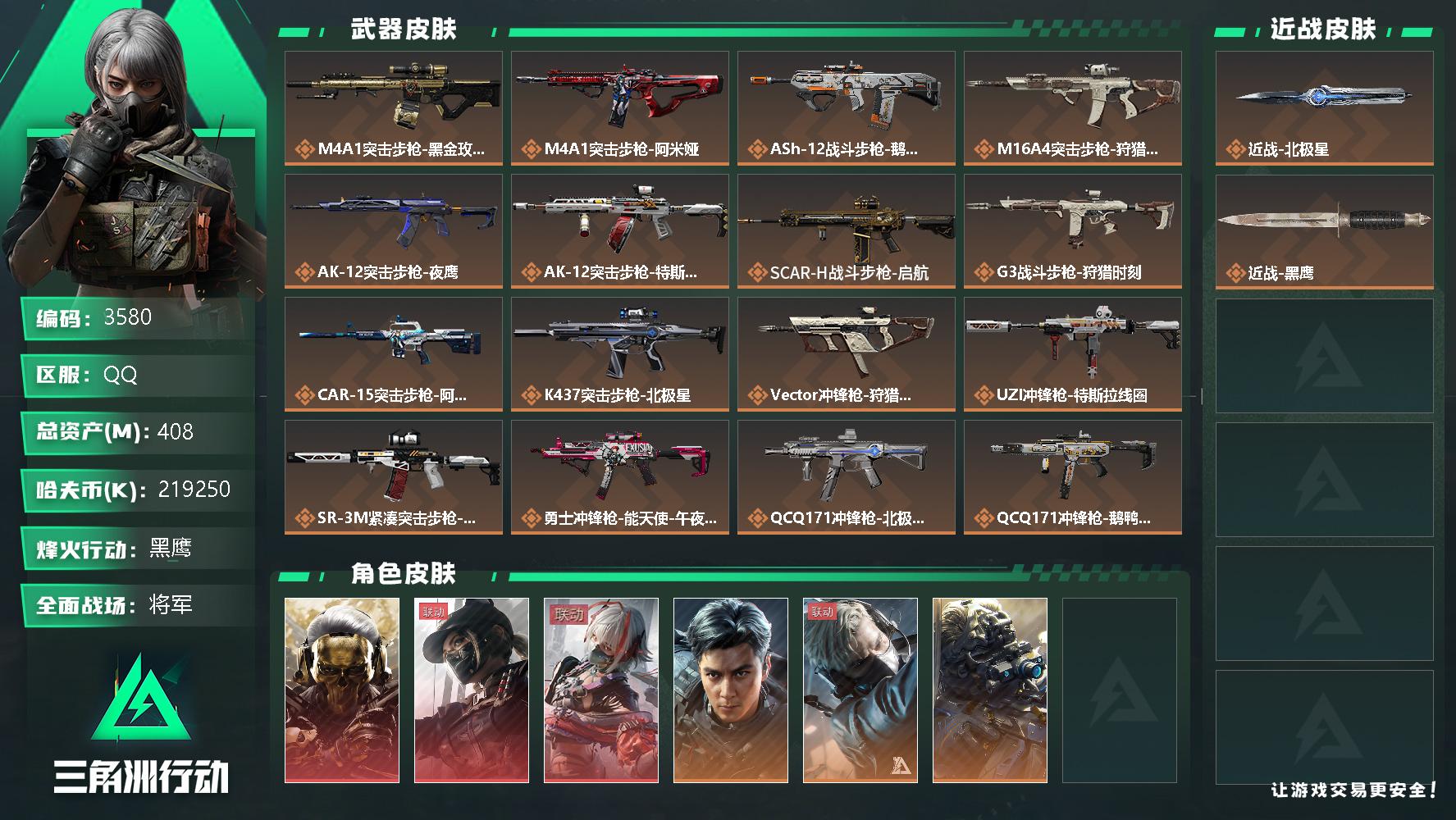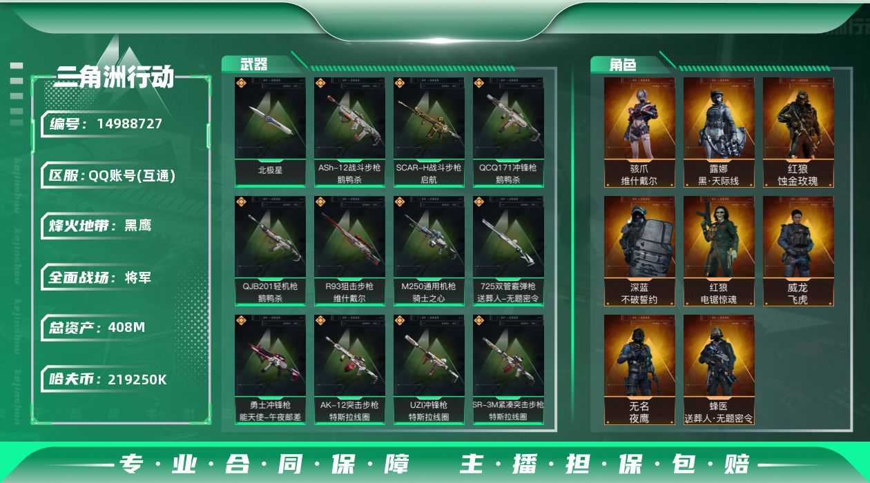 总资产408.8M 流动资产380.1M 哈夫币219M 2刀 3红皮 1金皮 顶级安全箱 仓库lv
