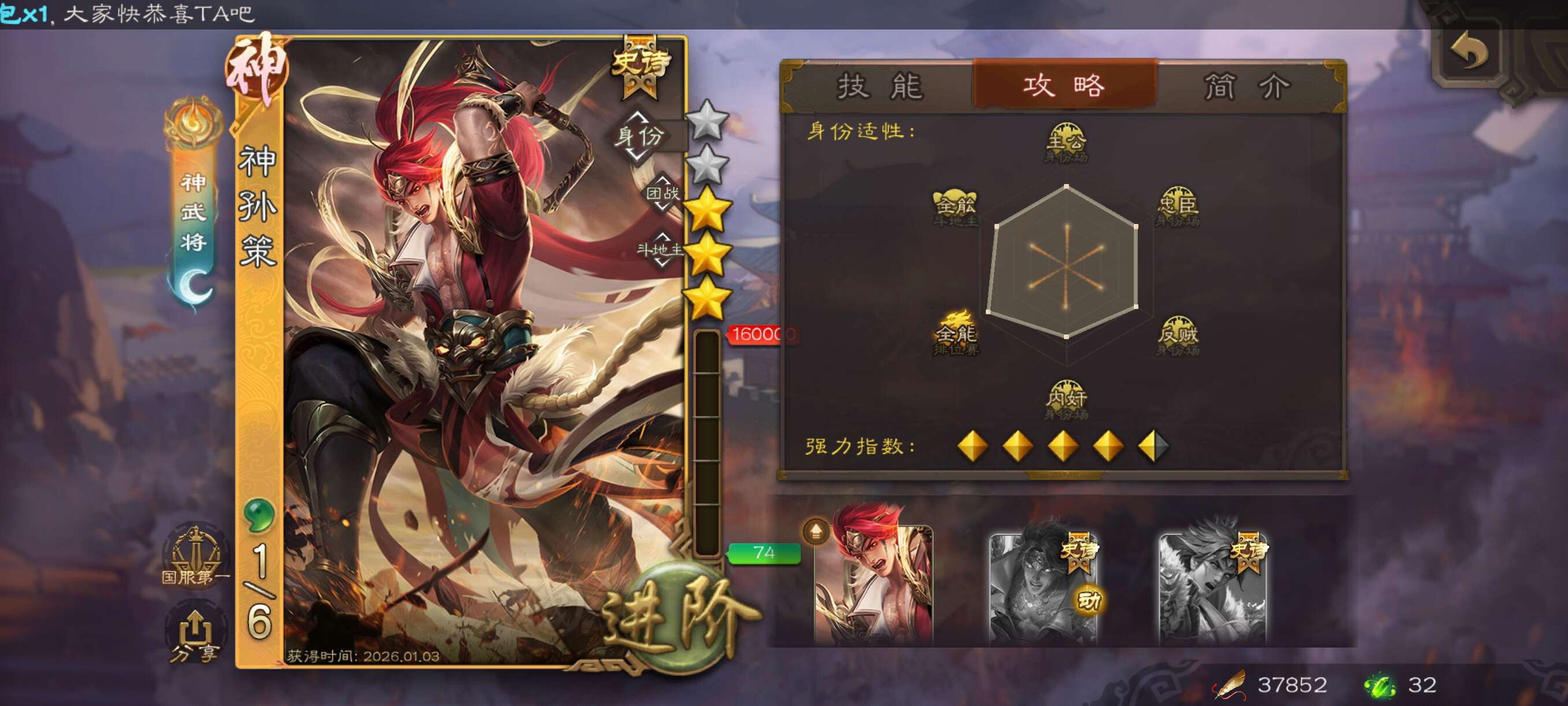 神孙策+麴义超级士兵开局号!材料充足,官服字母格式活绑