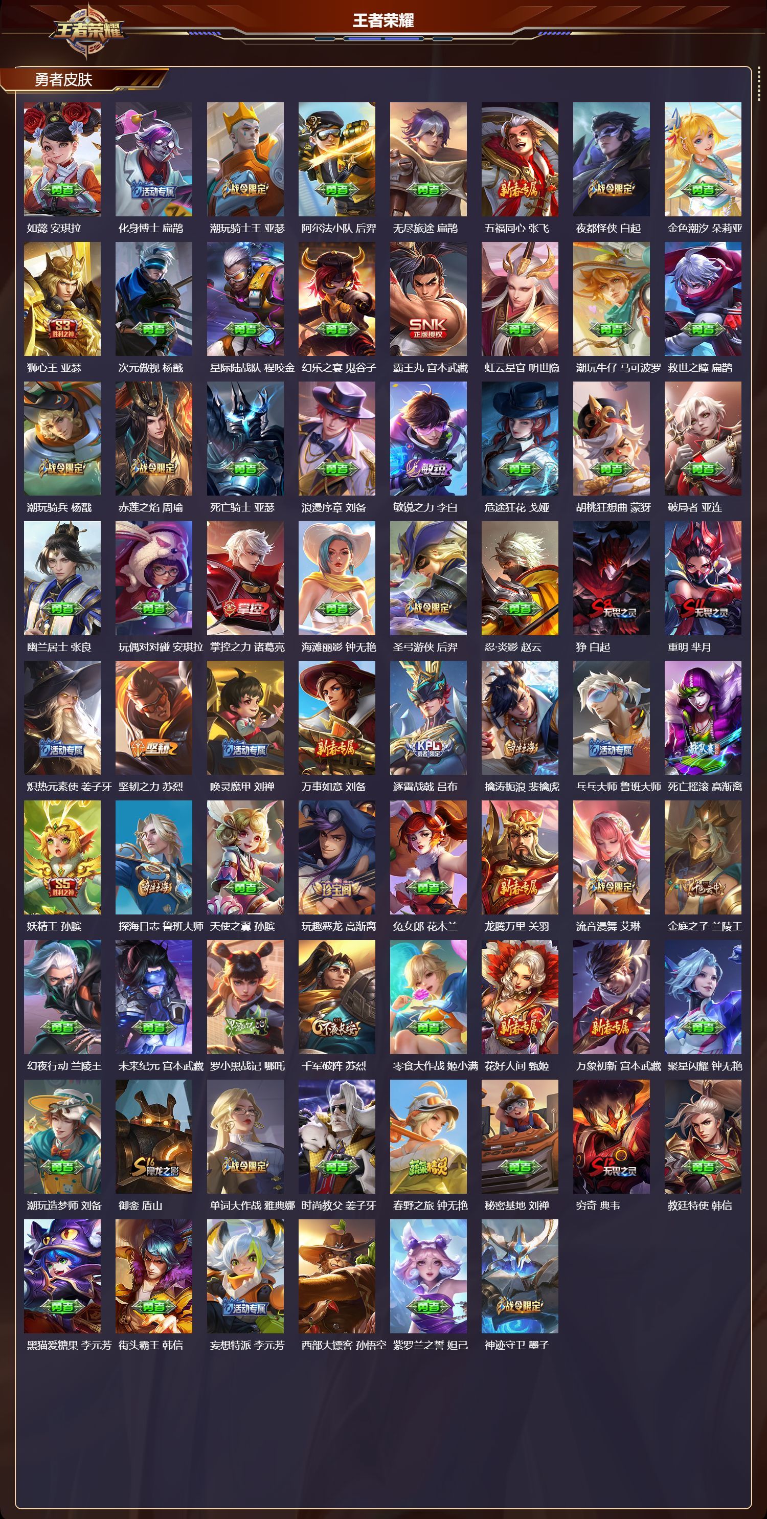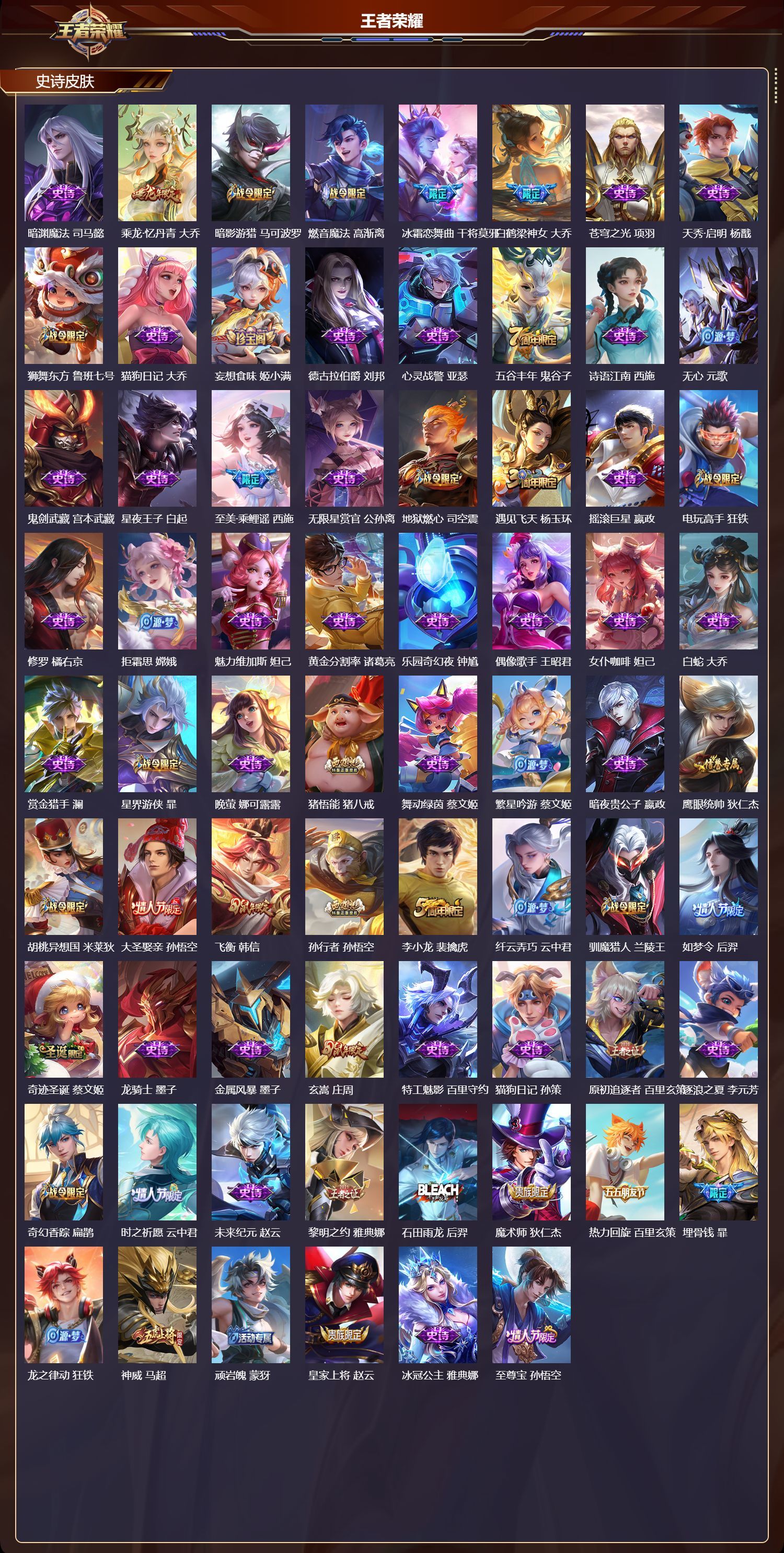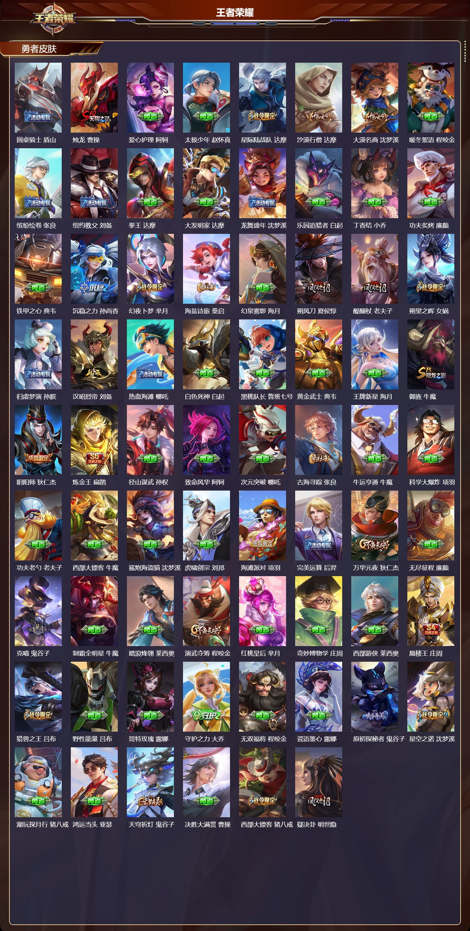 安卓QQ/荣耀黄金/482皮肤/127英雄/4典藏/0珍品无双/5无双/1珍品传说/46传说/152