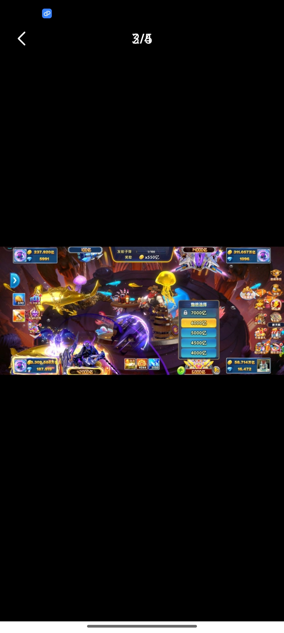 捕鱼大作战小米版本,原60亿炮,金币5.8兆,巅峰11级,巨多boss未打!