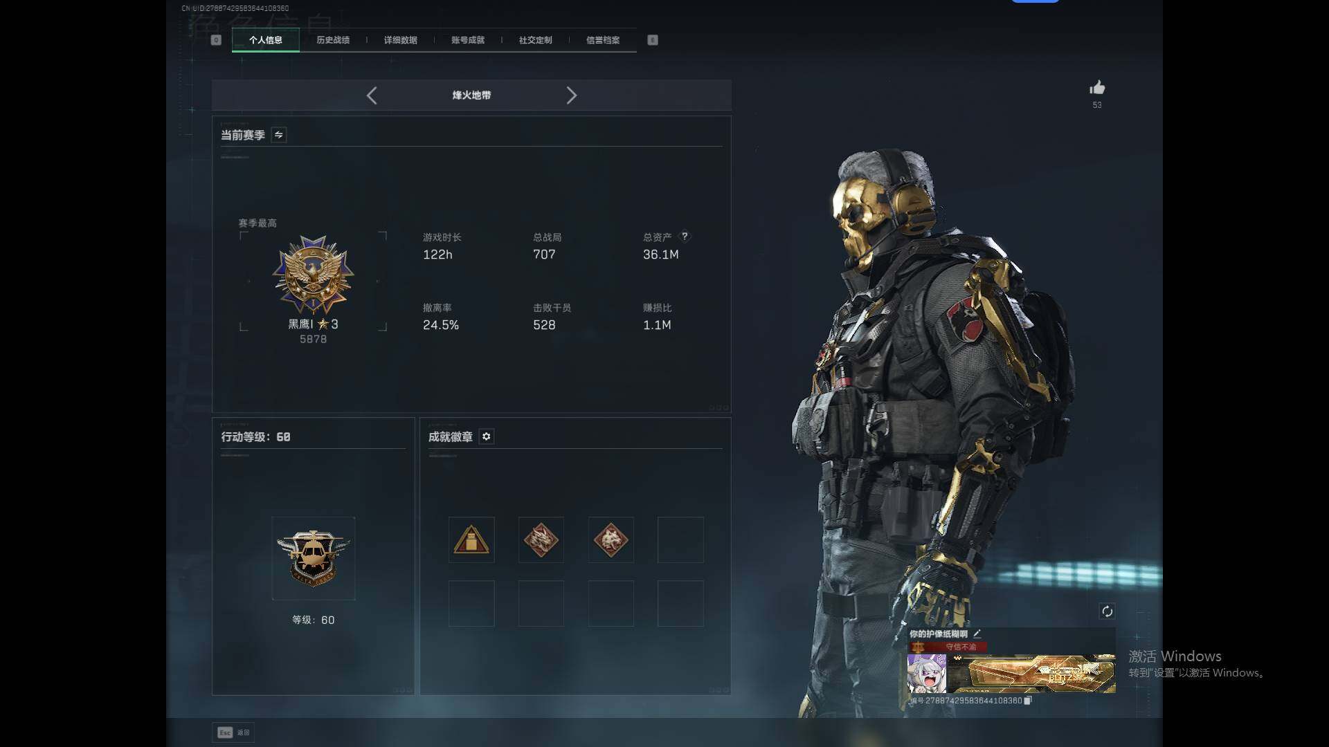 总资产(M):36M 哈夫币(K):482K 红狼-蚀金玫瑰/骇爪-水墨云图/蛊-能天使午夜邮差
