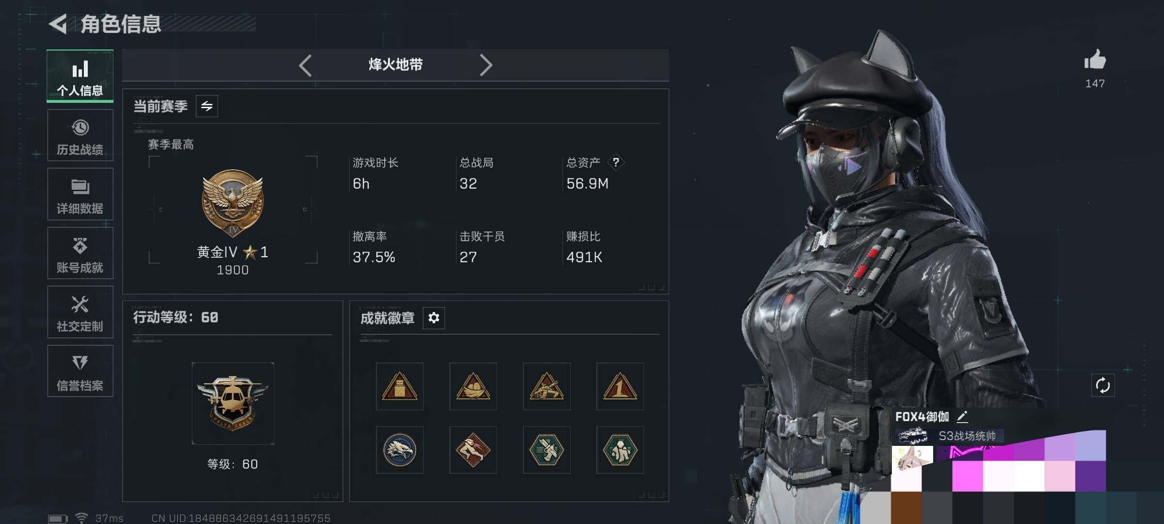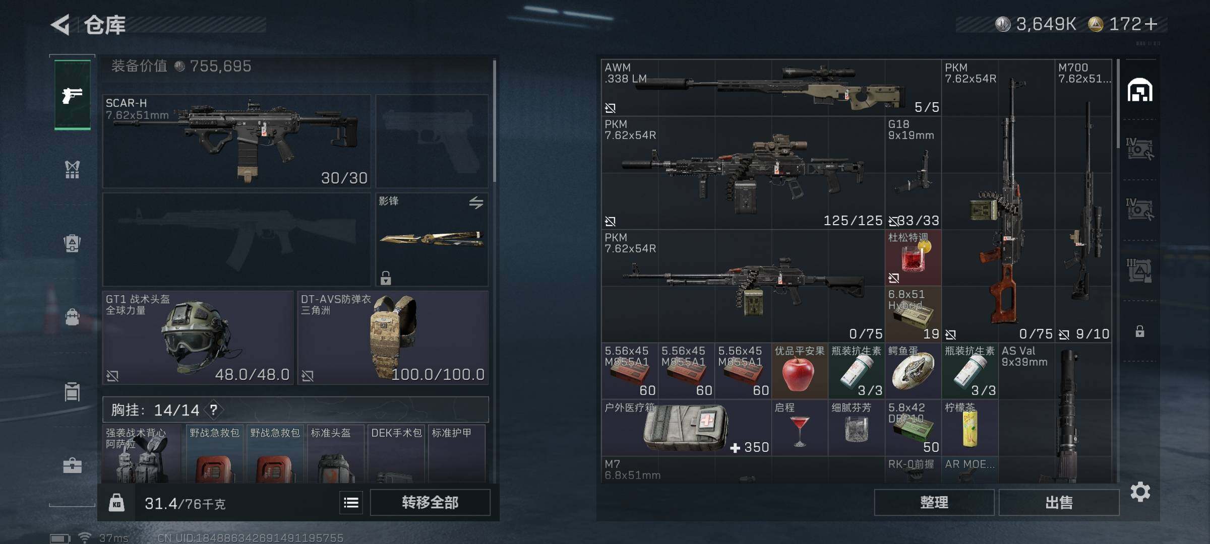 总资产(M):56M 哈夫币(K):3649K 露娜-黑·天际线/威龙-壮志凌云/蜂医-送葬人·无题密令/无名-夜鹰/红狼-电锯惊魂