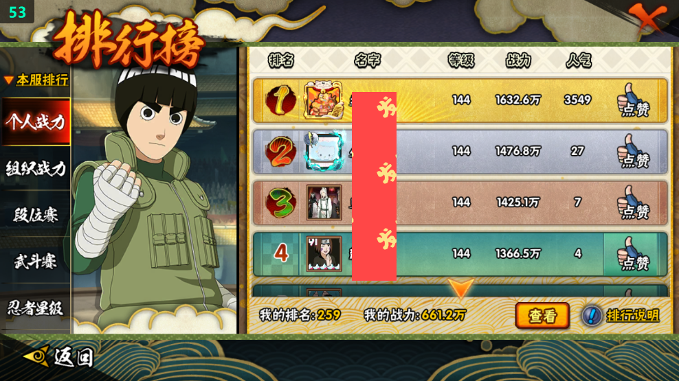661w舍人+止水10s+泳装鼬23A+百抽战力661忍者总