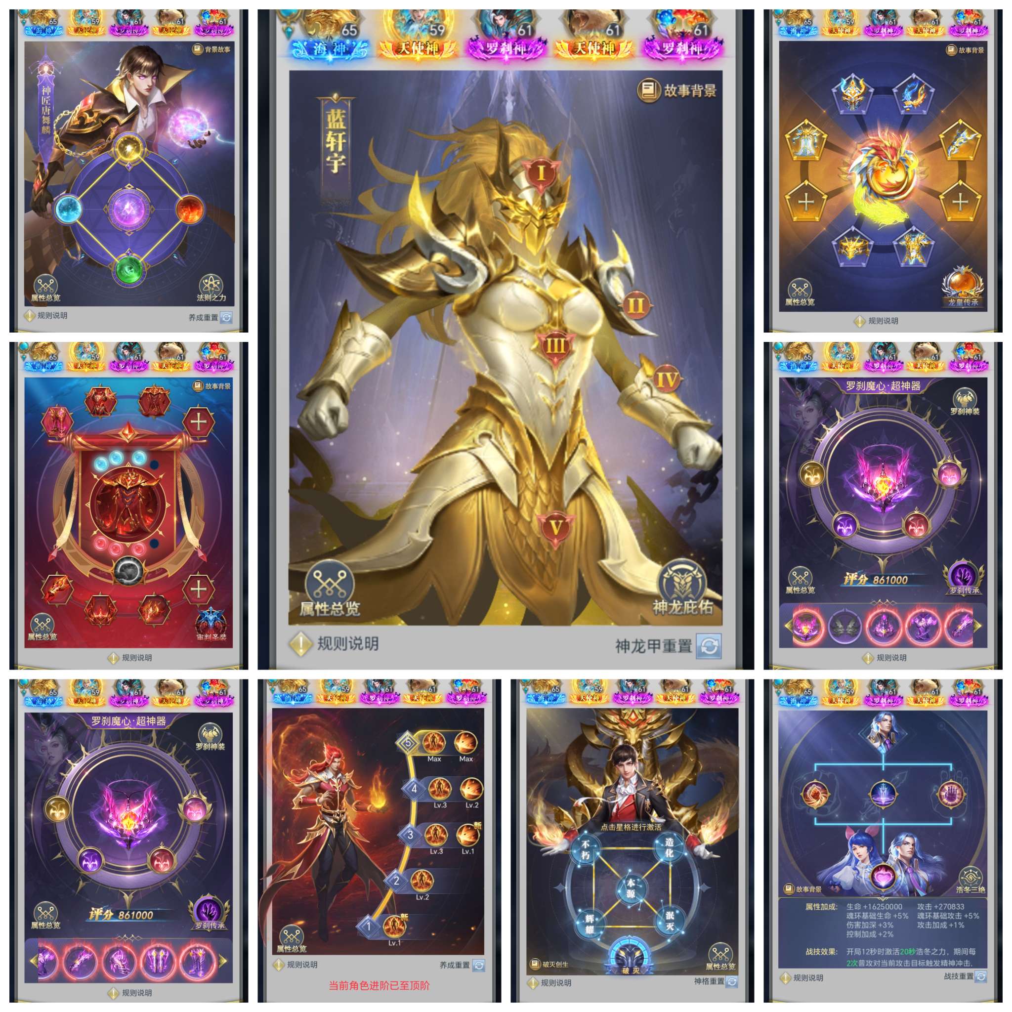 ,三神套,10排大奖,能赠送大奖全部满,积分基本满,满真身龙魂圣纹,法环三套,坐骑皮肤多,带6个小号
