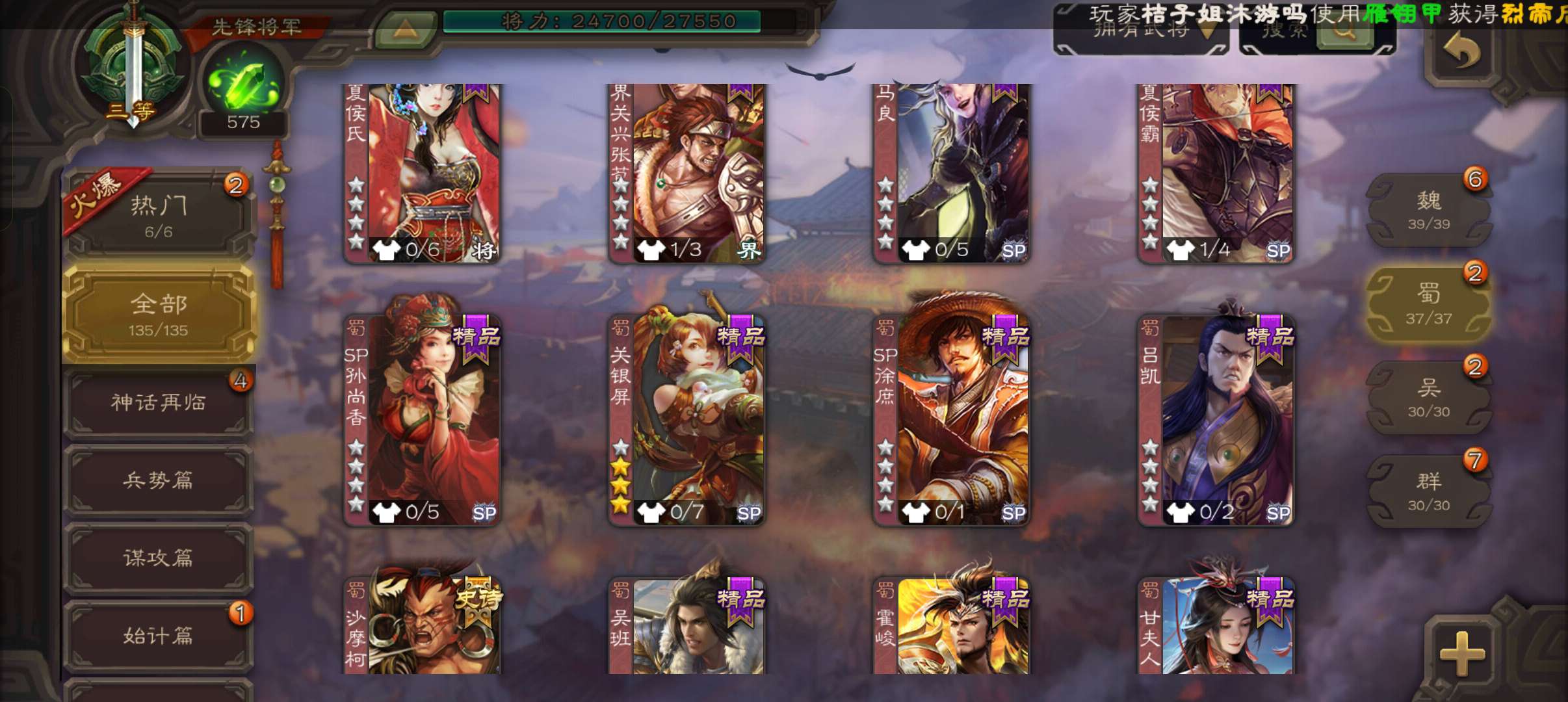 史诗武将数量: