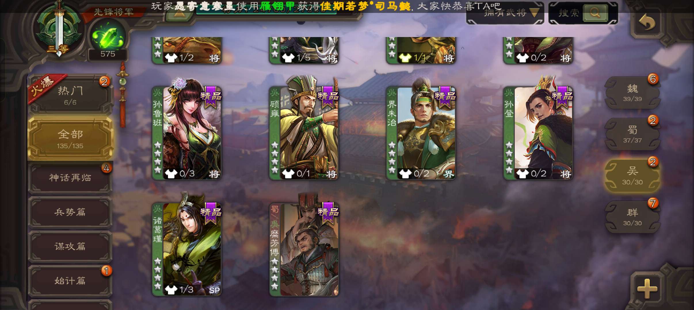 5.5万豆,回廊动白马沙摩柯双史诗先锋,谋卢植霍峻关银屏甘夫人135将