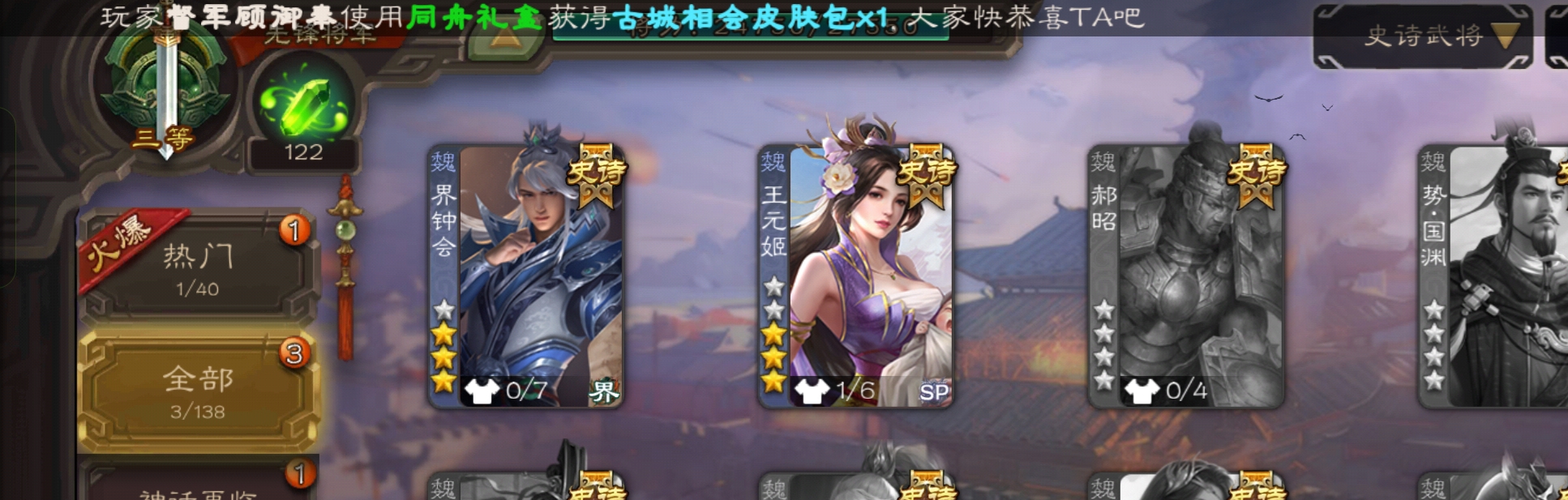 5.3万豆,回廊动态王元姬界钟会谯周3史诗先锋,谋小乔桥公谋韩当势陈祗动态界曹丕133将