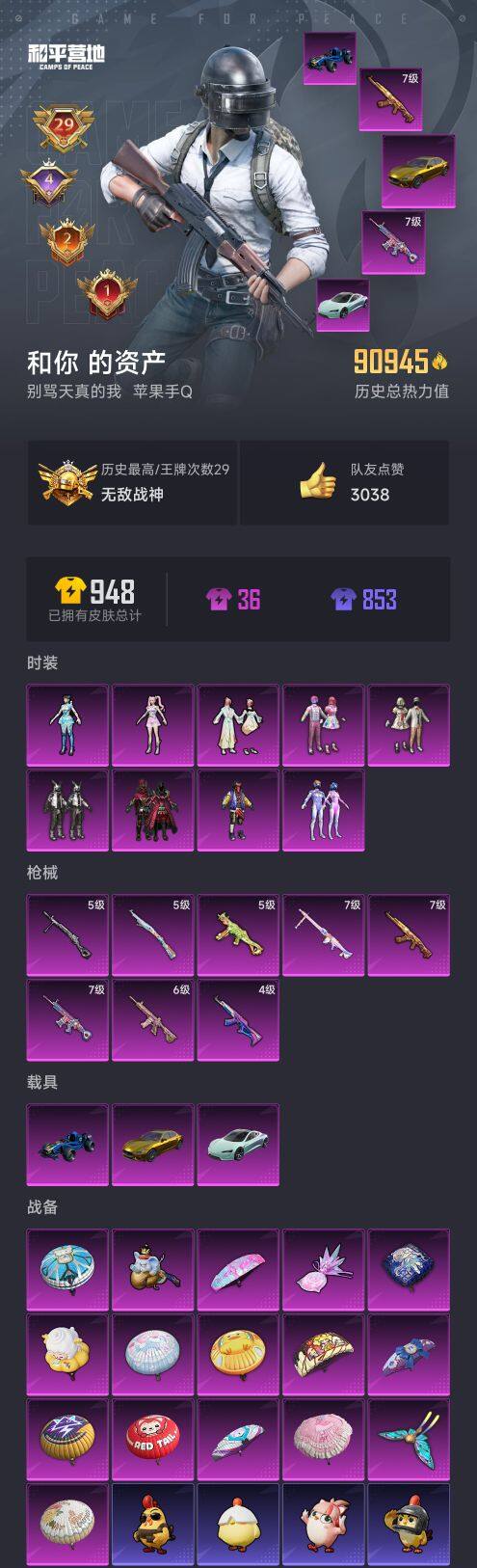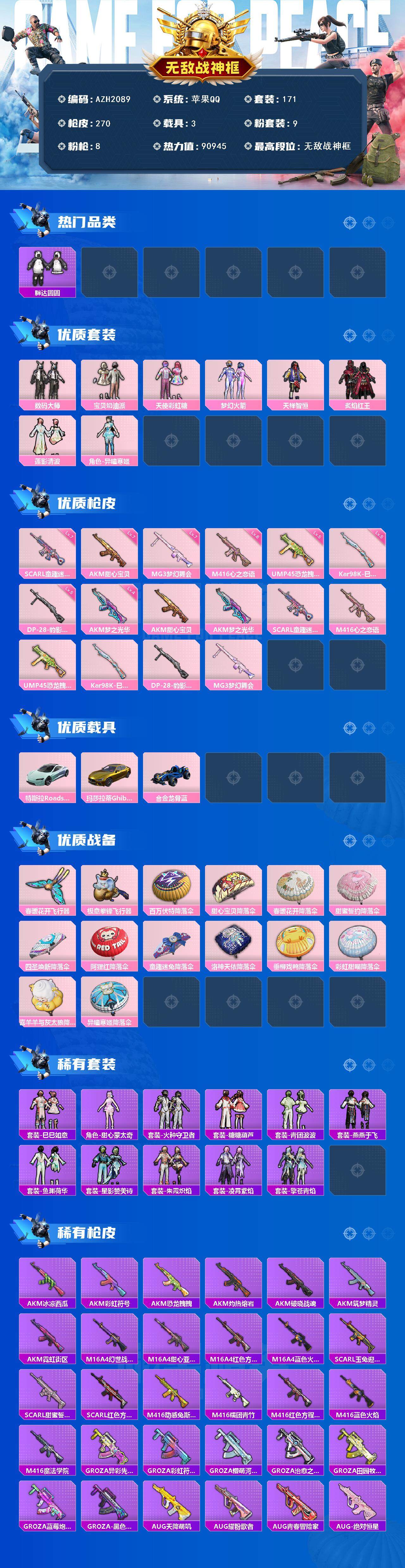 【AZH2089】苹果 手Q【29印记 无敌战神框 梦幻火箭胖达圆圆 满级甜心宝贝AKM满级童趣迷兔SCAR-L满级梦幻舞会MG3 3载具金玛莎】无敌战神框-9粉装-8特效枪-3载具-3粉色飞行器-90945热力值-29王牌印记-171套装-270枪皮