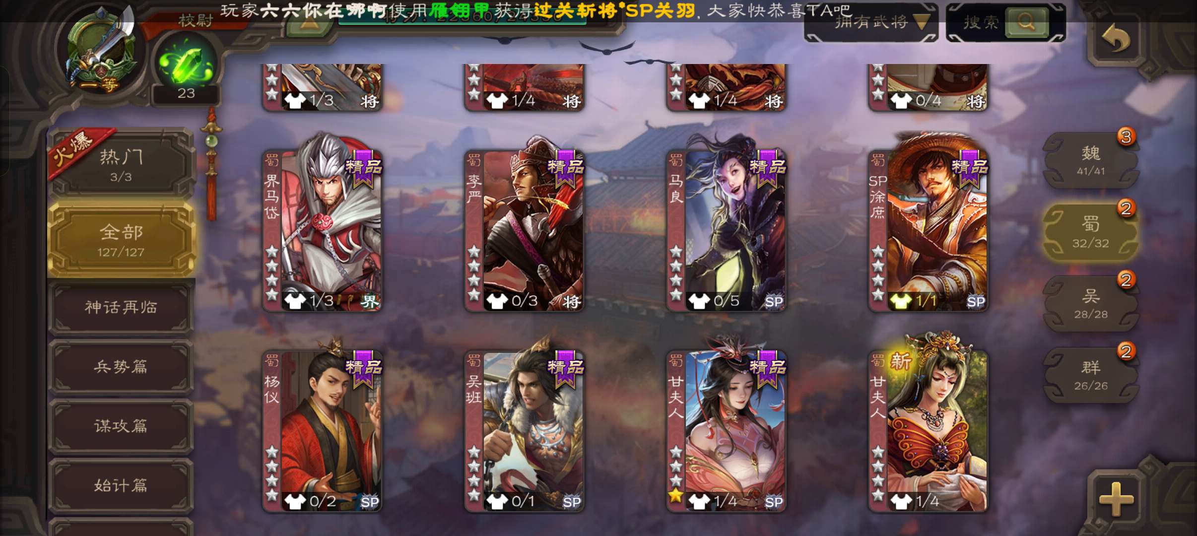 4.5万豆,天工势杨弘,回廊动白马界钟会双史诗一等校尉,甘夫人界满宠谋高顺127将