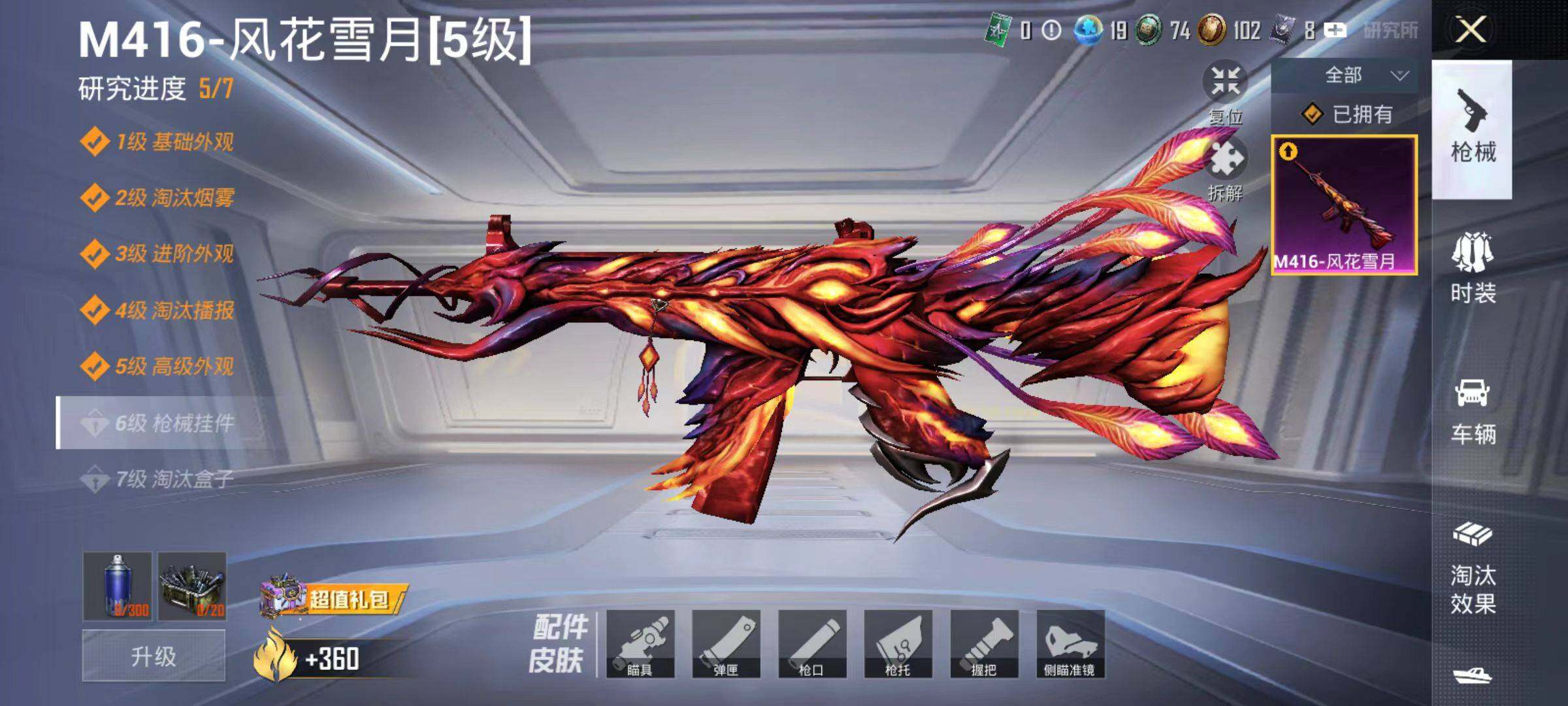 77套装/枪械1/装备76/战备61/热力值25944/五级M416-风花雪月