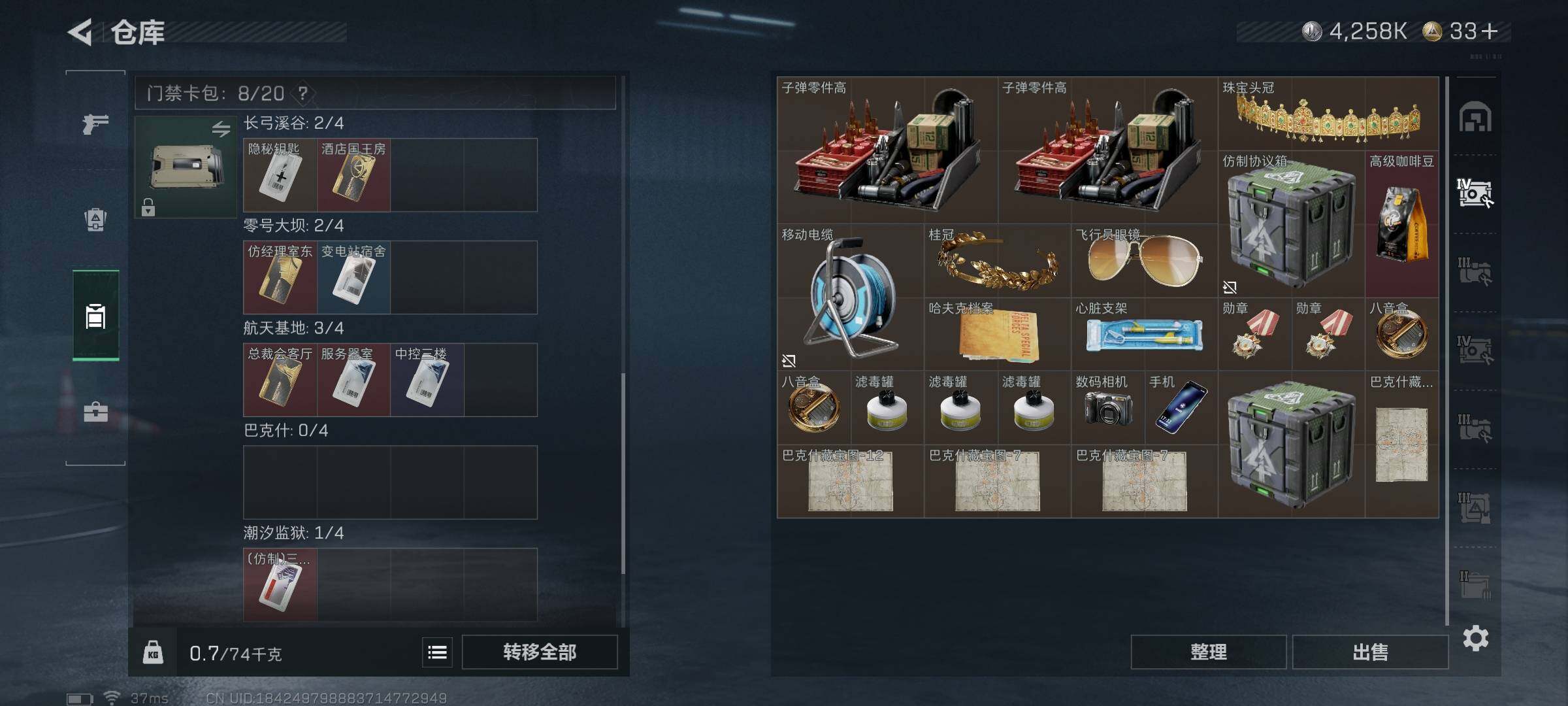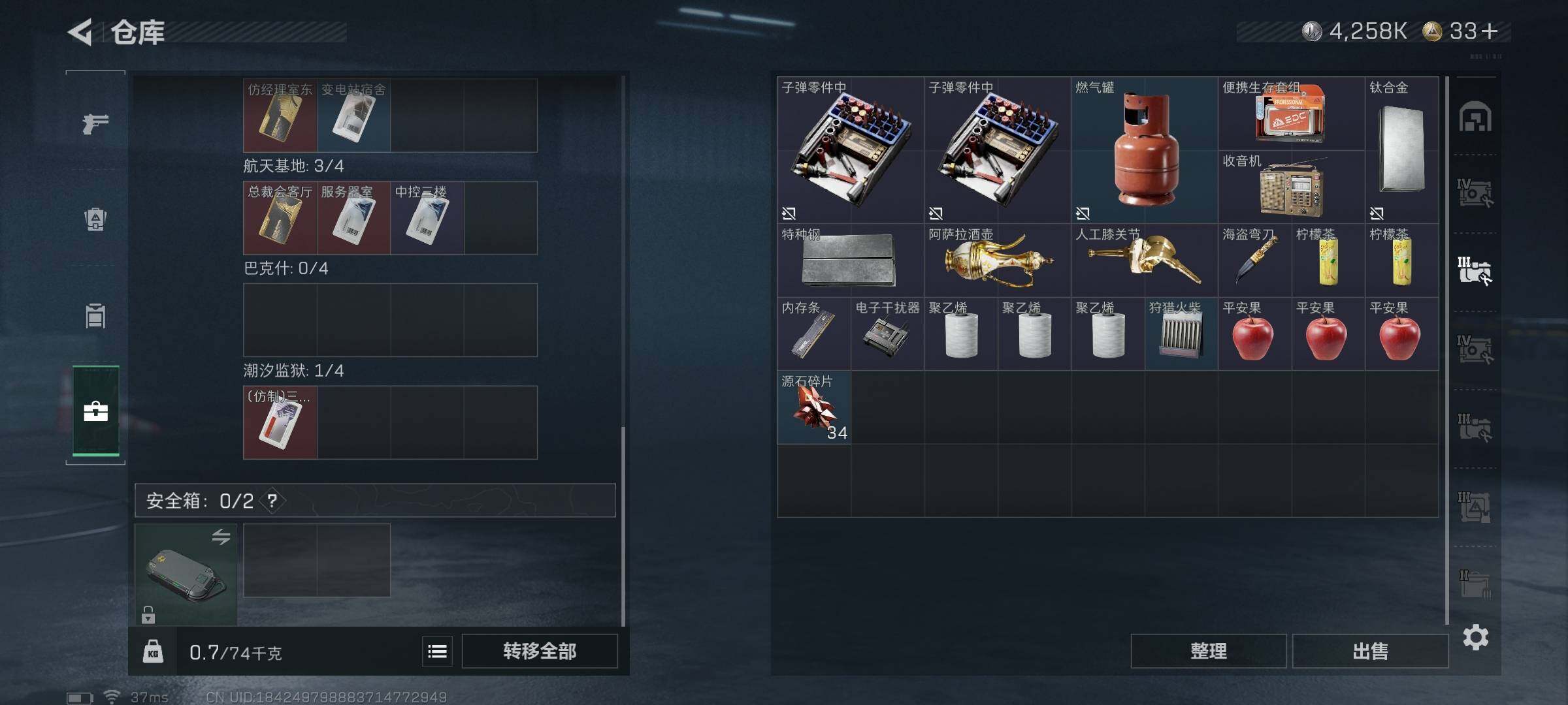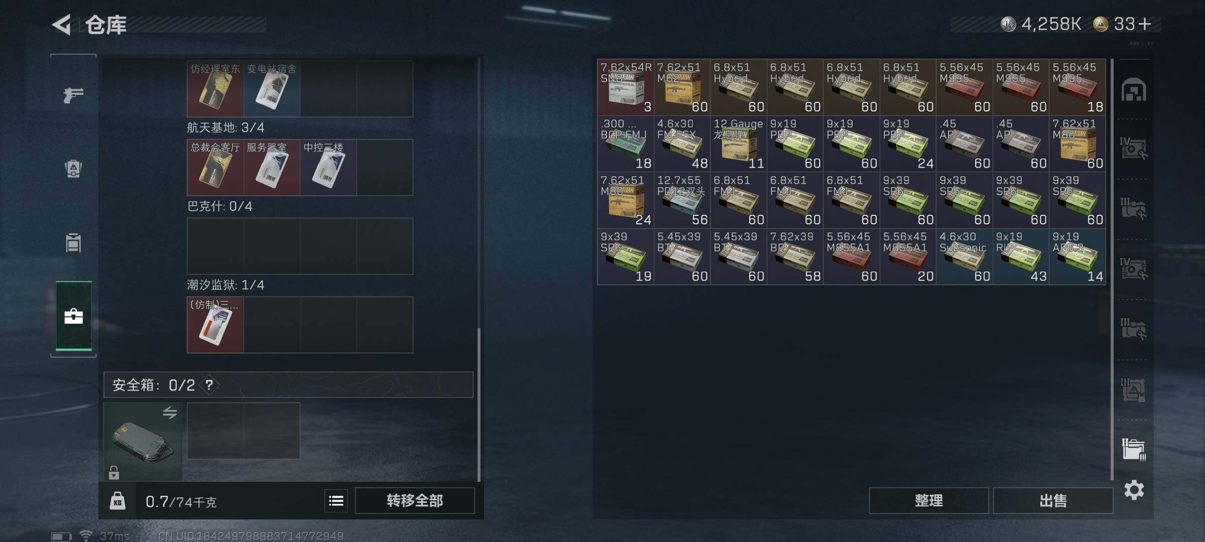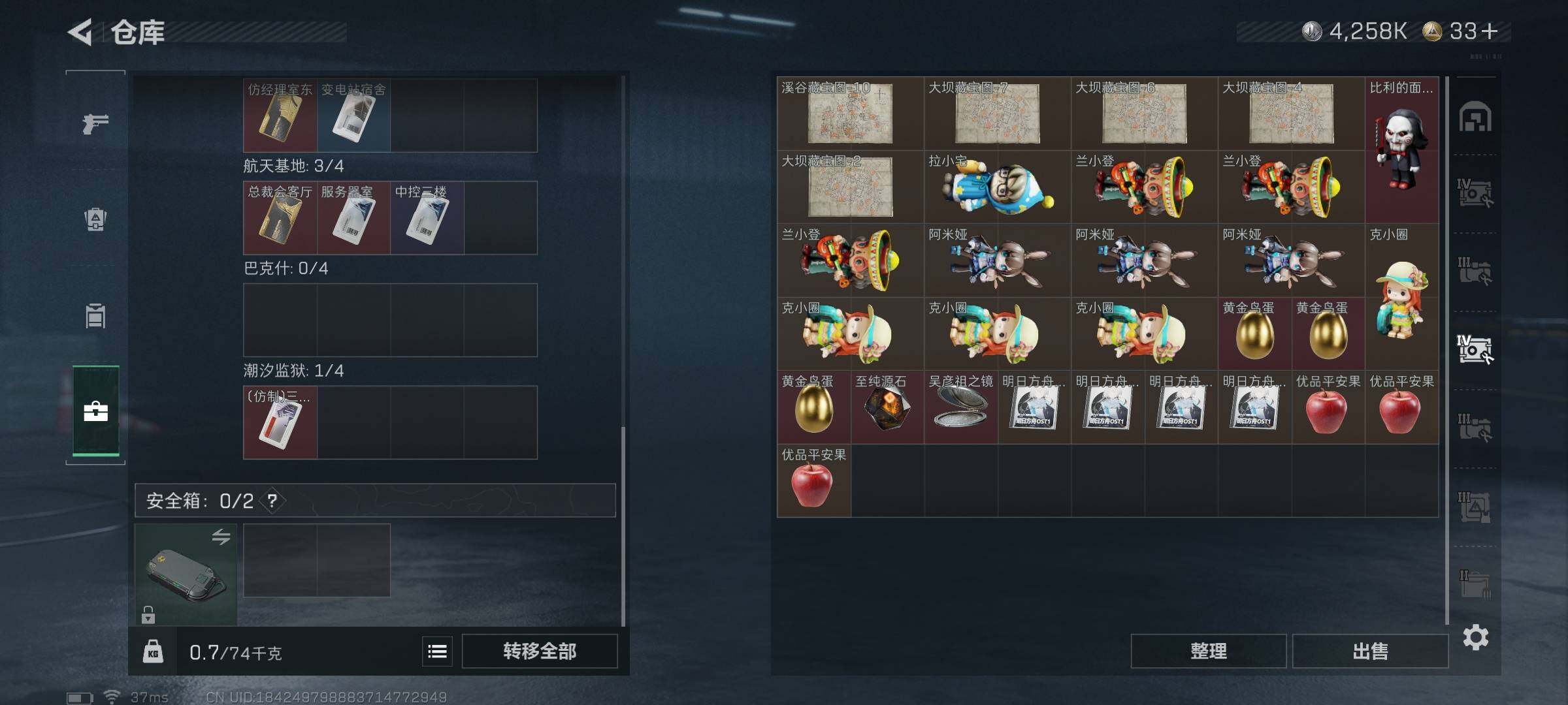 总资产(M):58M/哈夫币(K):4258K/哈夫币(K):4258K/传说枪皮数:25/全面战场
