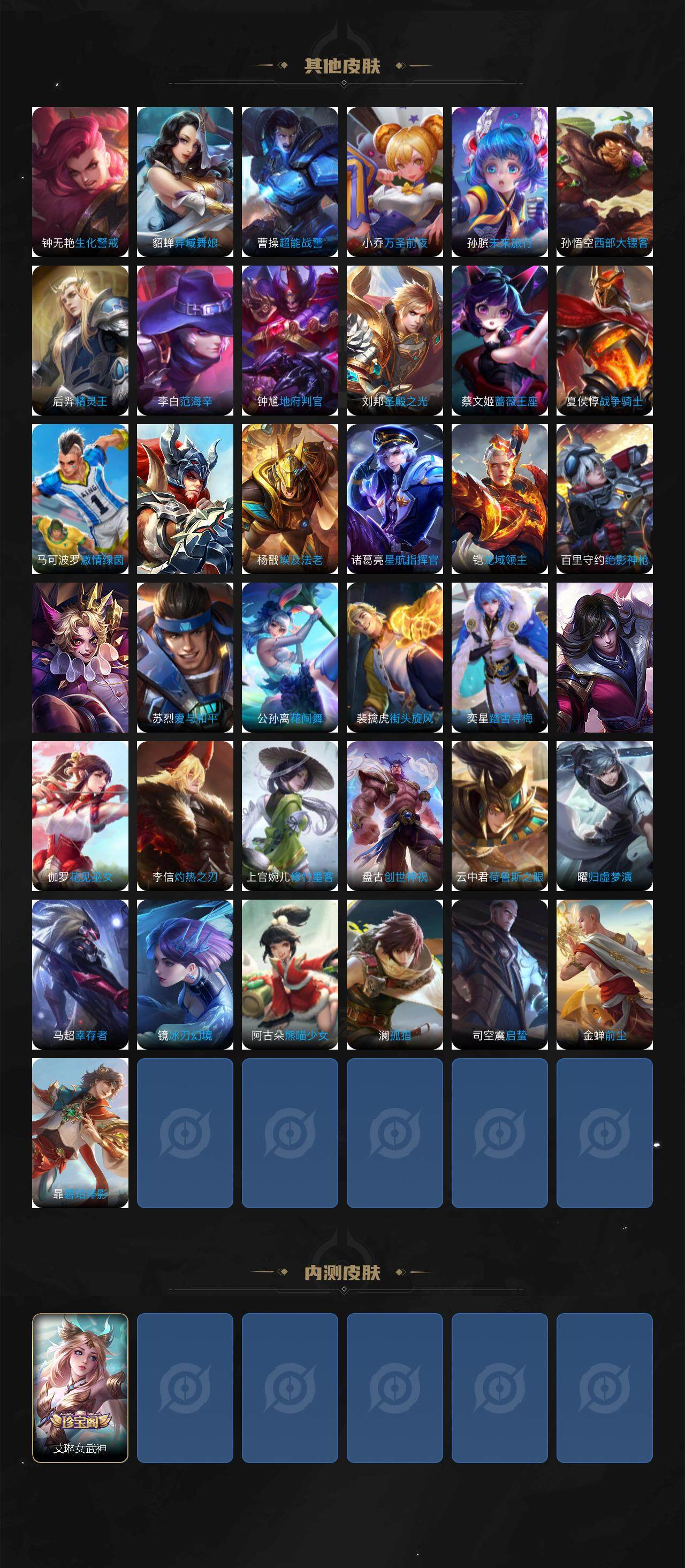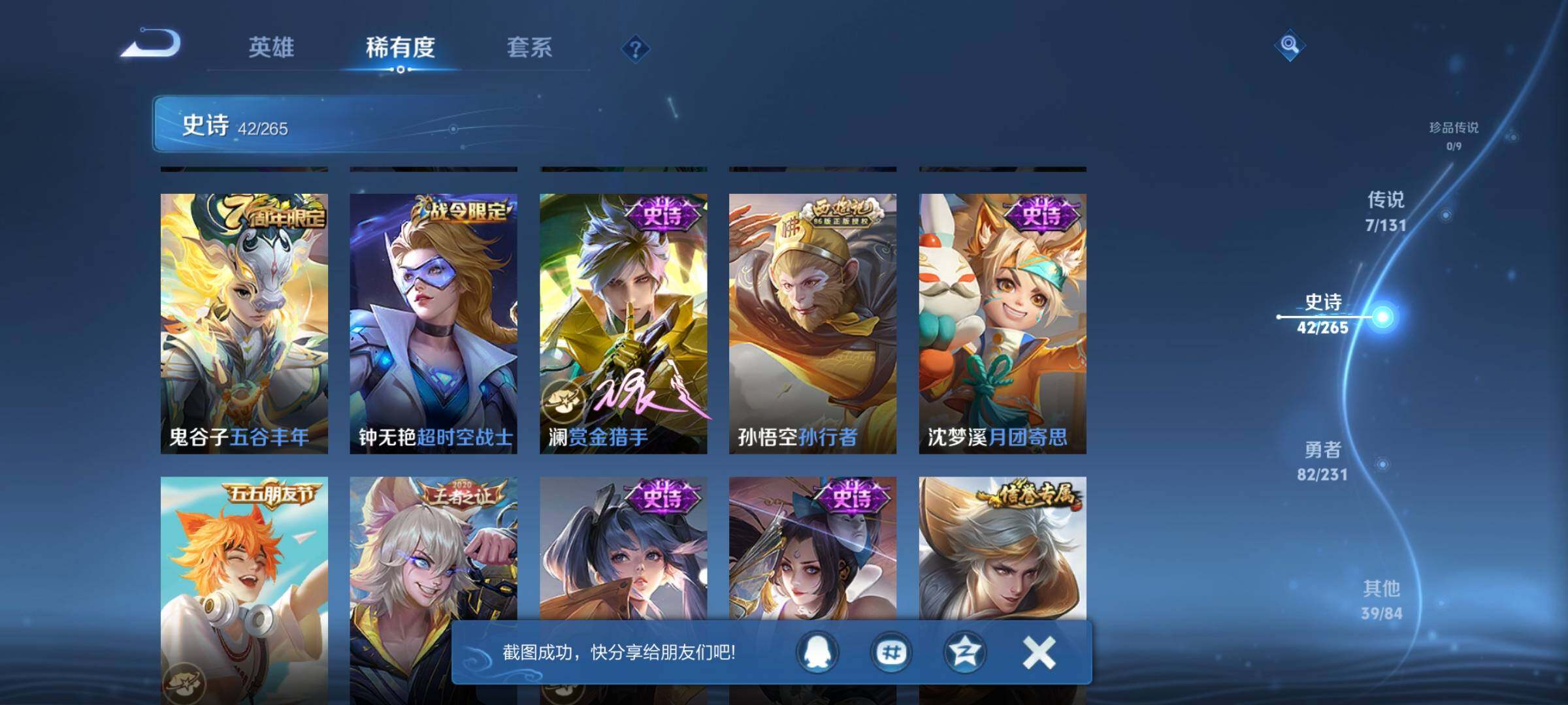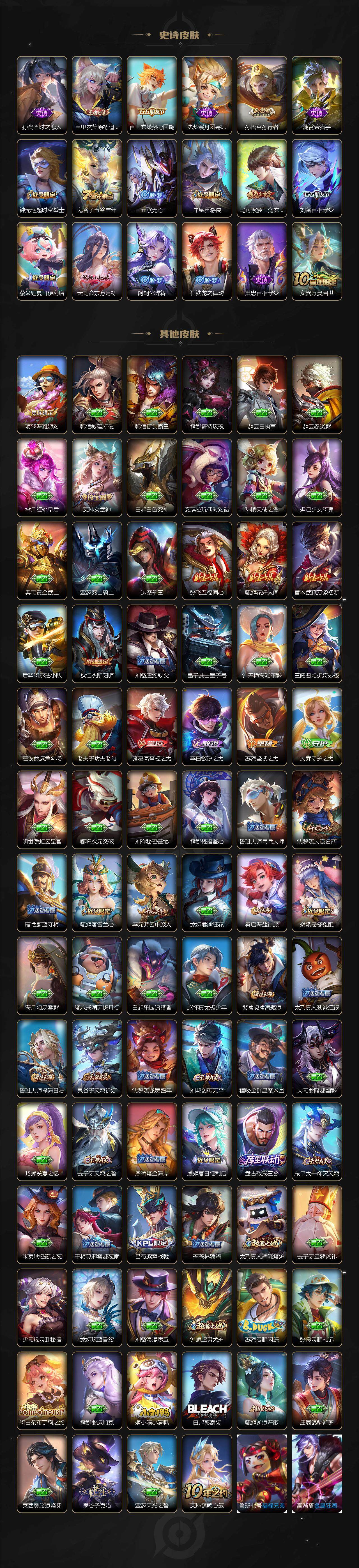 皮肤172 英雄125 绝世王者 荣耀典藏1 无双皮肤1 传说7 其他皮肤53-