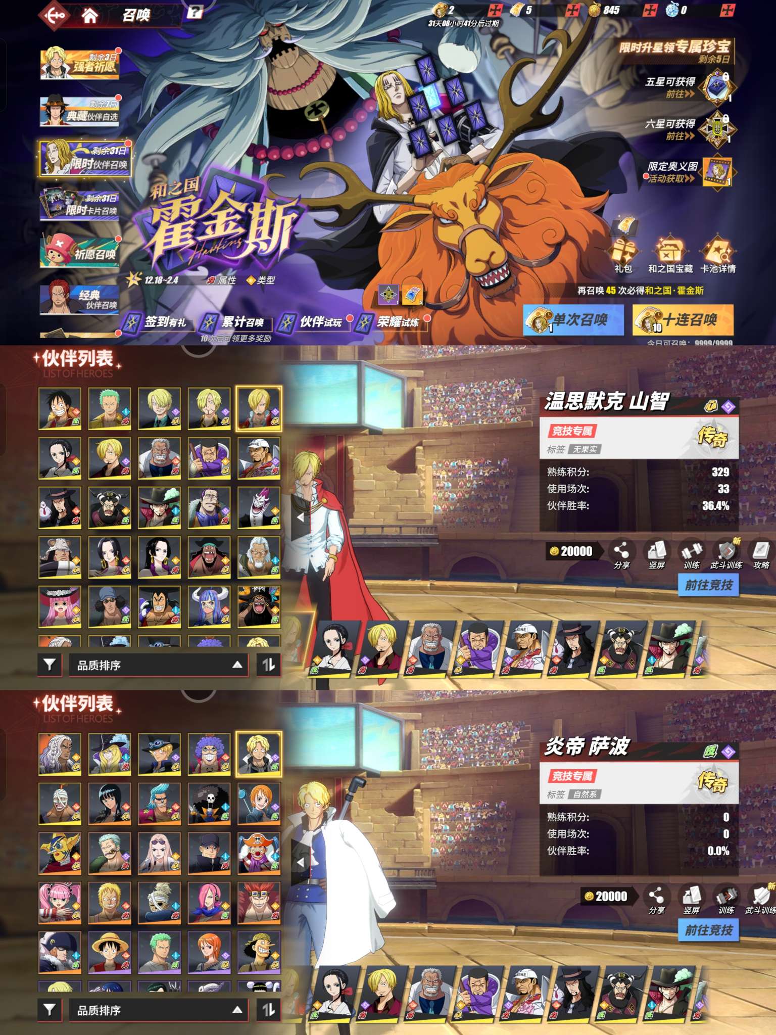 竞技场31传奇3强者,魔神山治,炎帝萨博,四皇黑胡子,库赞藤虎,御田,4399版本安卓都能玩
