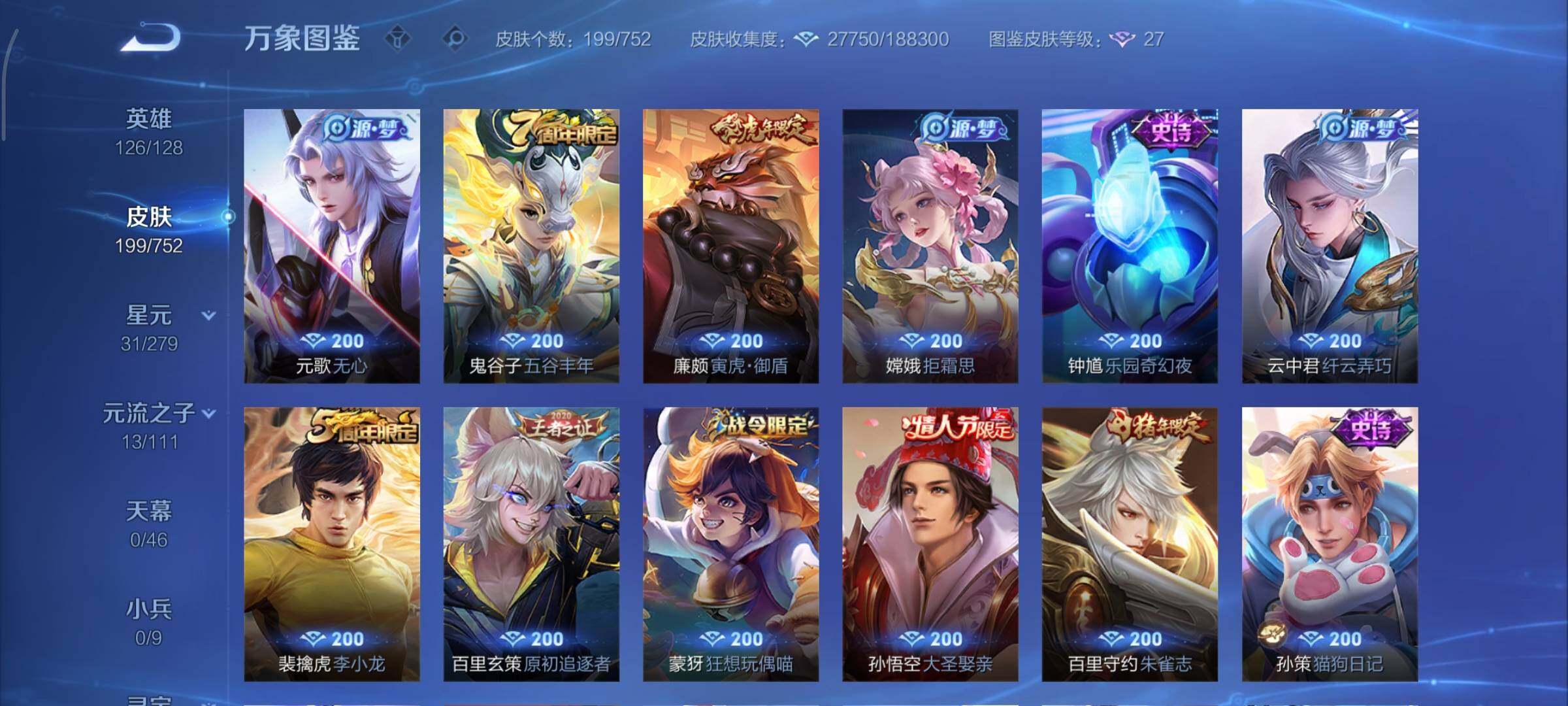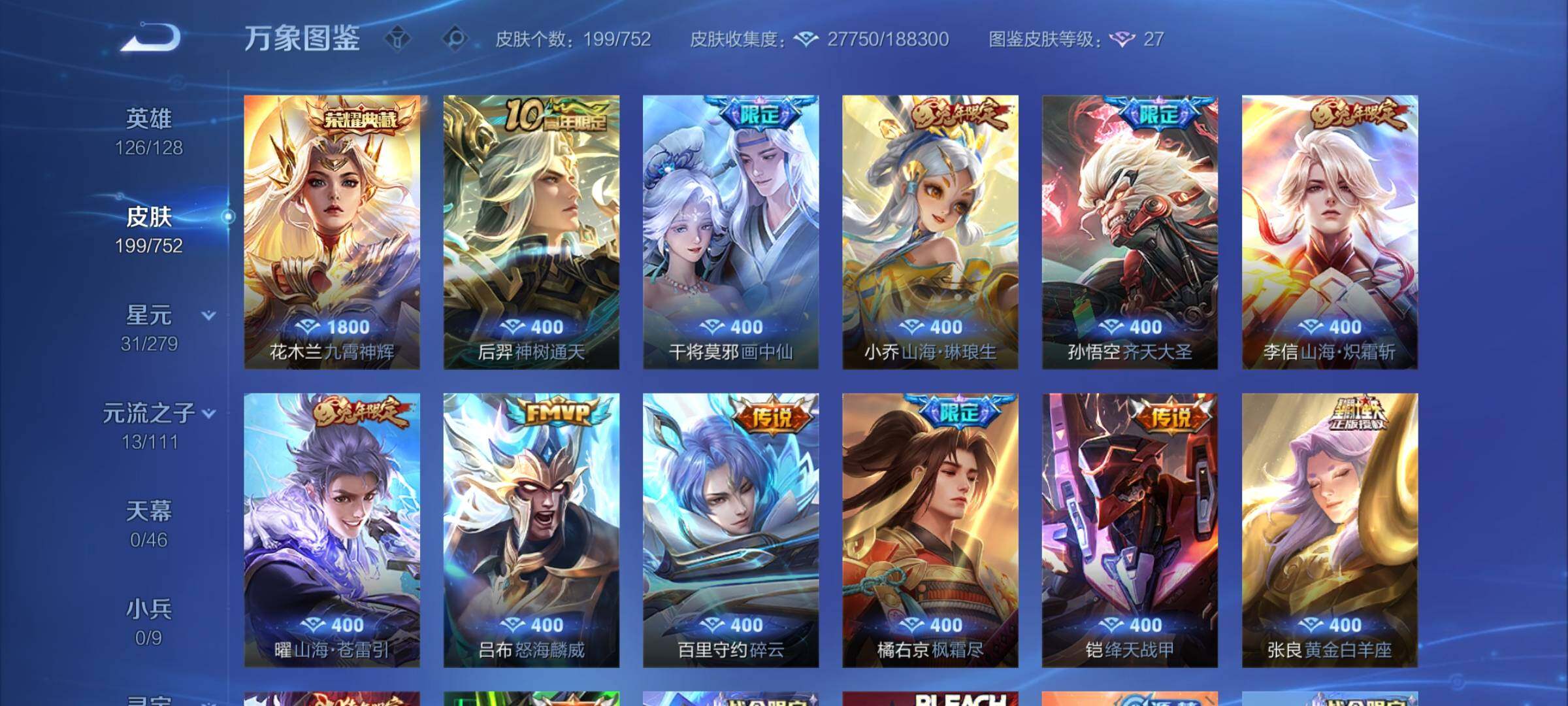 /可换绑【性价比优质号 花木兰典藏 白虎志 兔年全套 朱雀志 多传说限定质量号】 3352星币 7按键,1星传说,10王者印记,满级铭文,可二次KK7375,安卓Q-V7-199皮肤-1典藏皮肤-13传说-47史诗【荣耀典藏】:花木兰九霄神辉【星元皮肤】:孙尚香未来机甲【传说皮肤】:后羿神树通天,干将莫邪画中仙,孙悟空齐天大圣,小乔山海琳琅生,曜山海苍雷引,李信山海炽