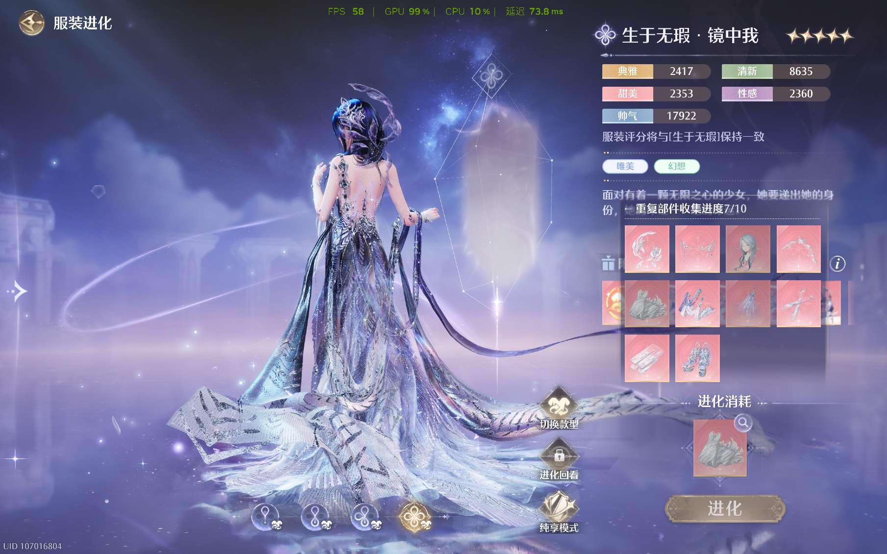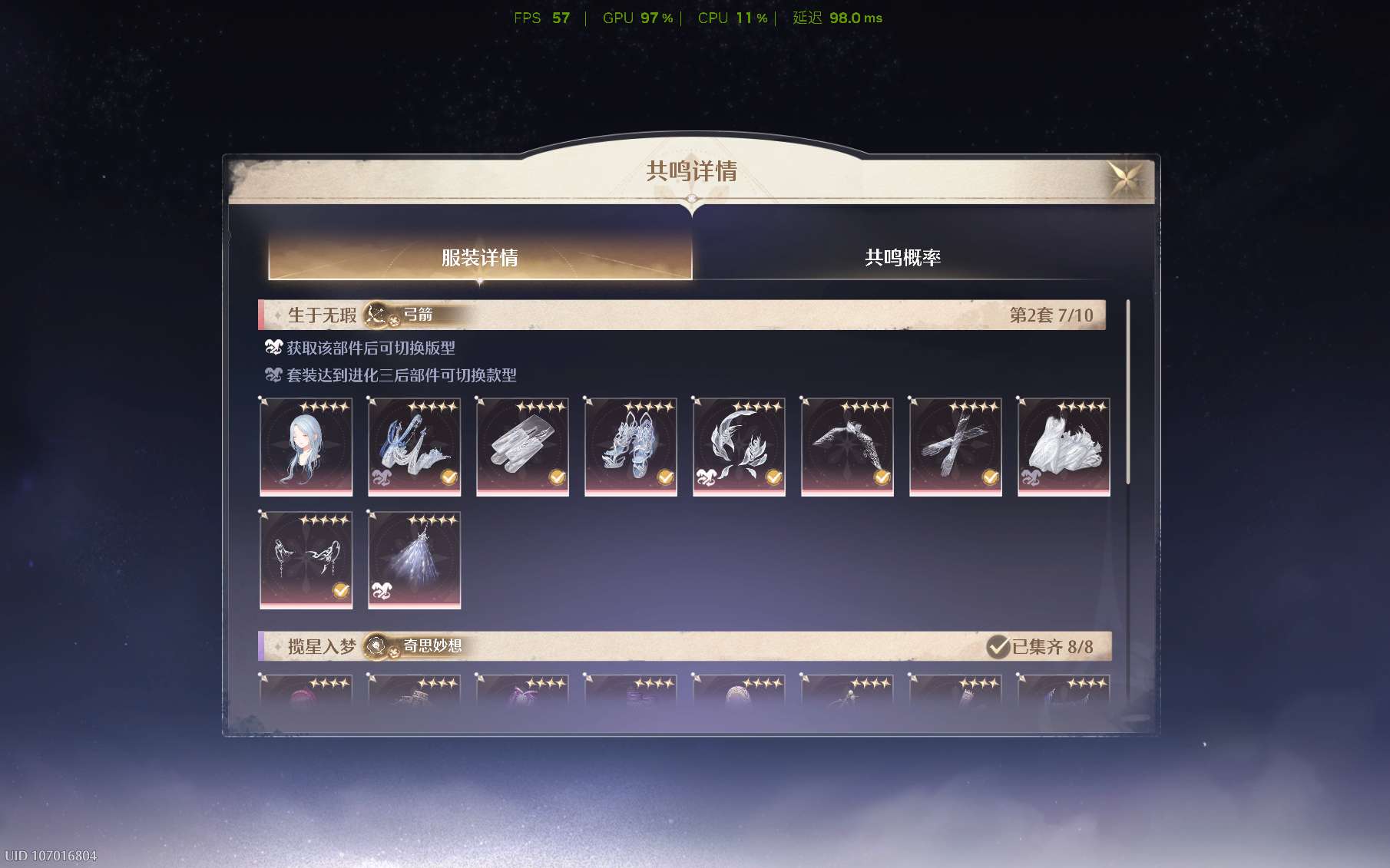 神女套差3部件满进,圣女套差10抽进二,晶莹诗集进二。1.0主线只推到进祈愿树林。