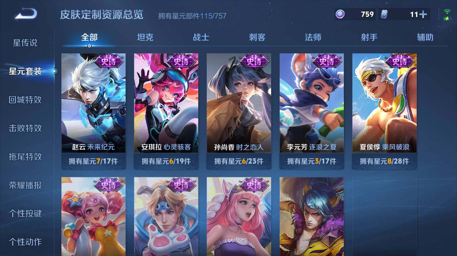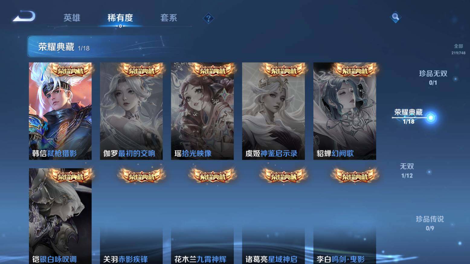 安卓Q-V7--127英雄-219皮肤-1典藏皮肤-1无双-9传说-54史诗