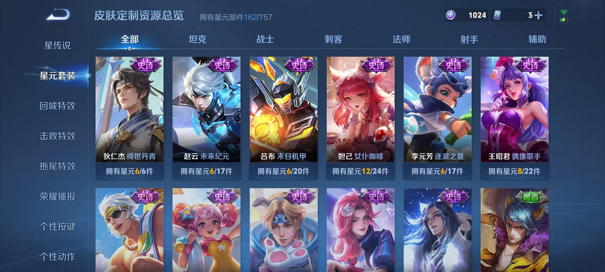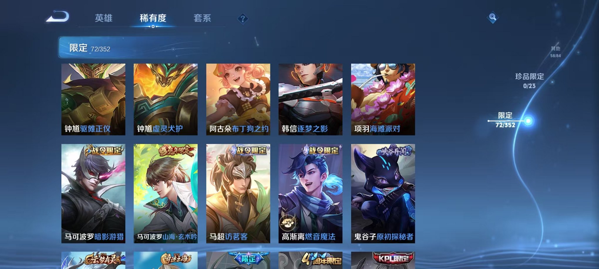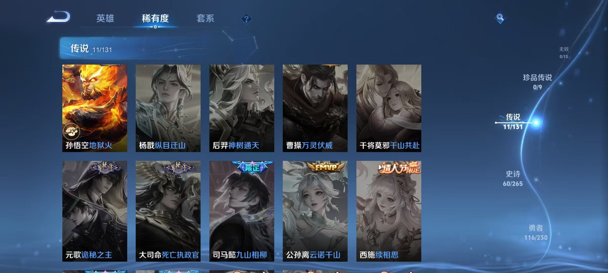 皮肤246 英雄125 至尊星耀 荣耀典藏1 传说11 其他皮肤75-