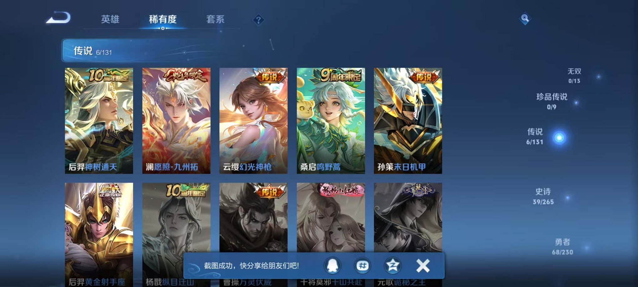 148皮肤1水晶6传说可秒换绑