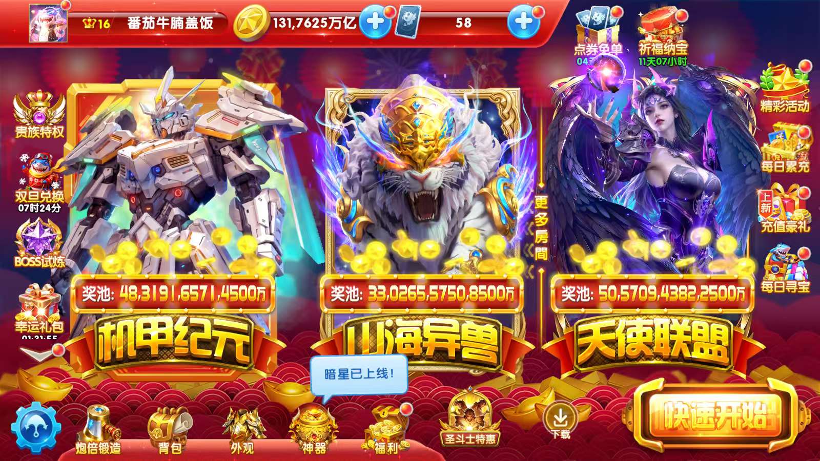 二郎神,冥斗士3个,哈迪斯,纯救济金1.2兆,带金币131兆出,开局就是王炸,全部换绑,可以小刀