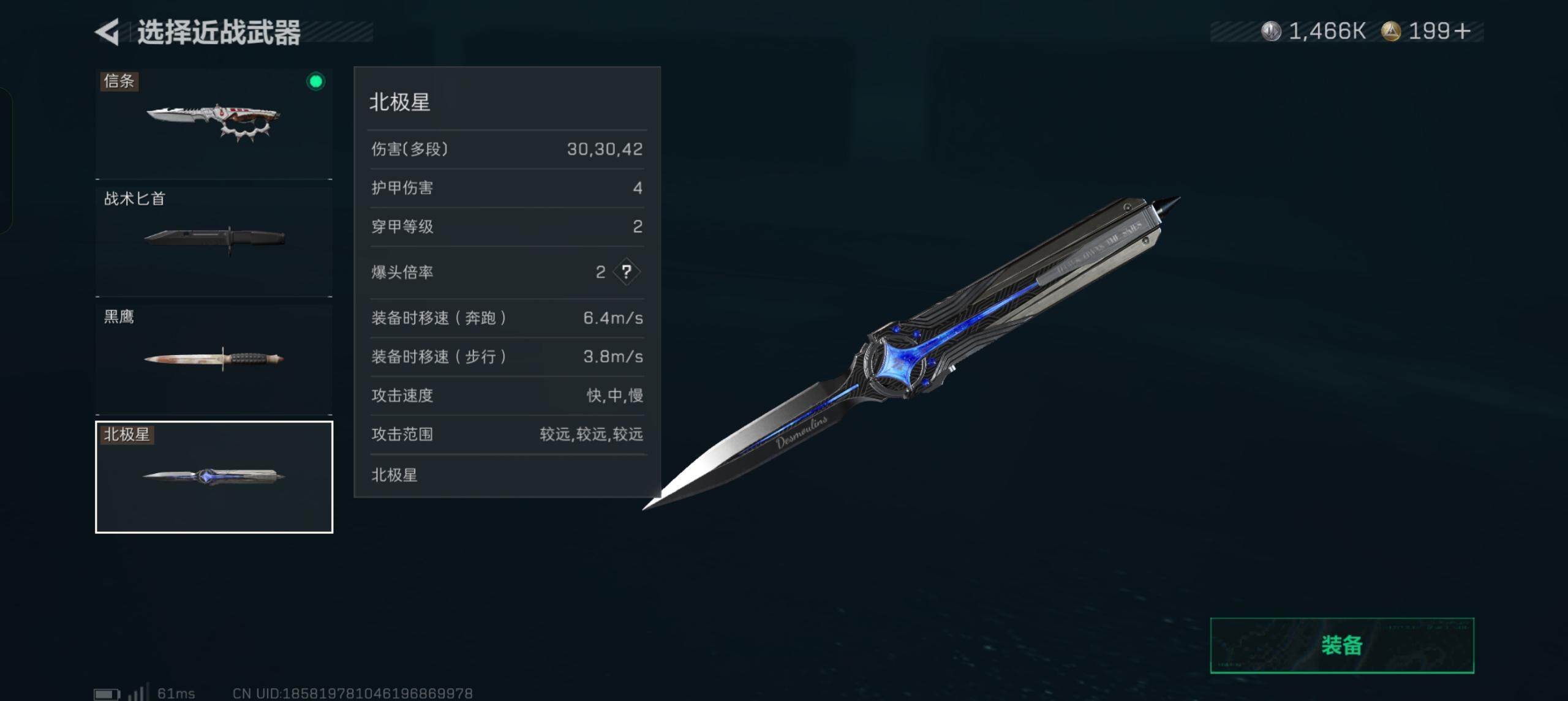 【近战皮肤】:近战-北极星,近战-信条,近战-黑鹰