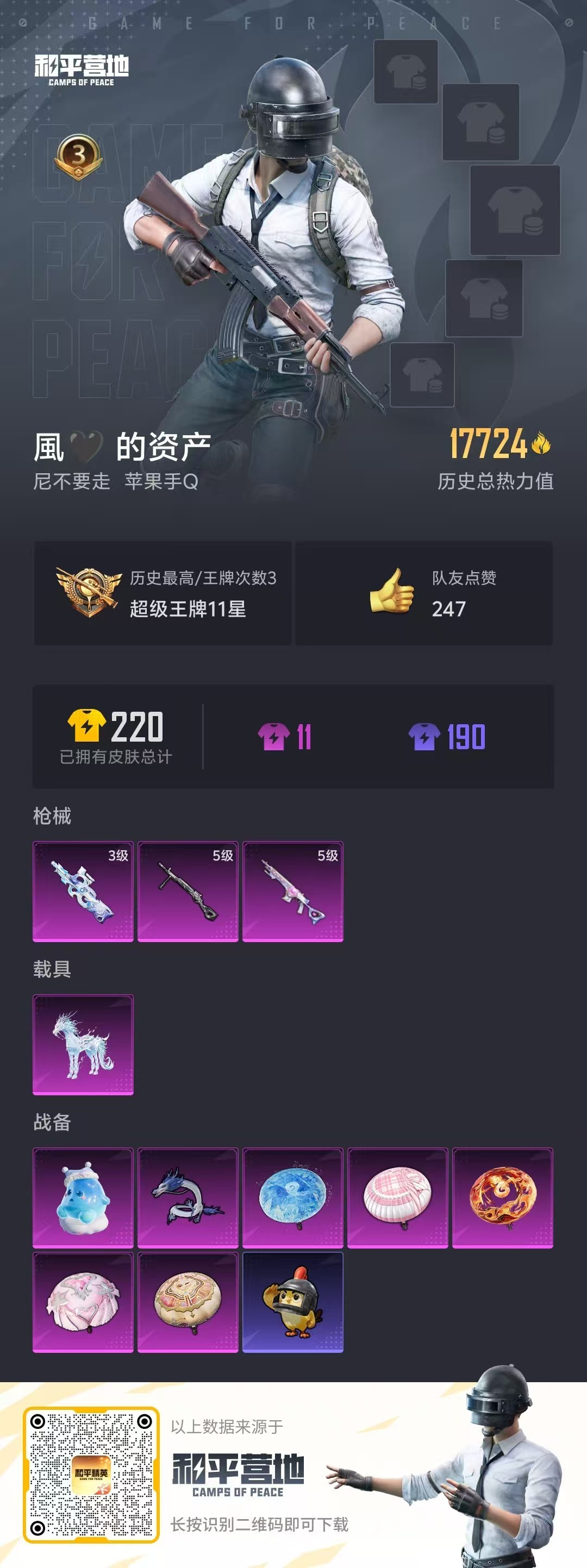hs56025 苹果手Q-3王牌印记-3特效枪-1载具-17724热力值-39套装-67枪皮【3特效