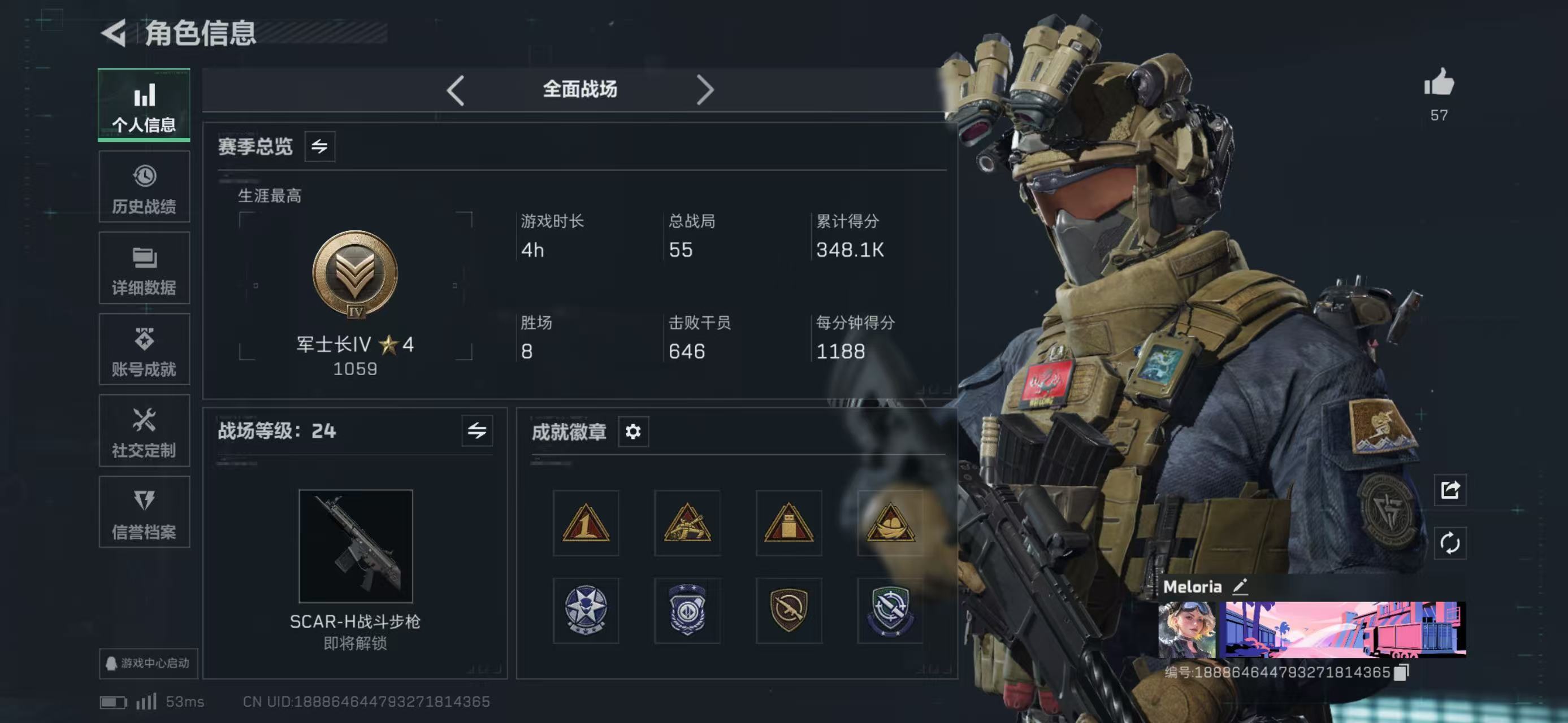 hssjz753 总资产113.72M,哈夫币 417.55K,战场等级:24 军士长,行动等级:6