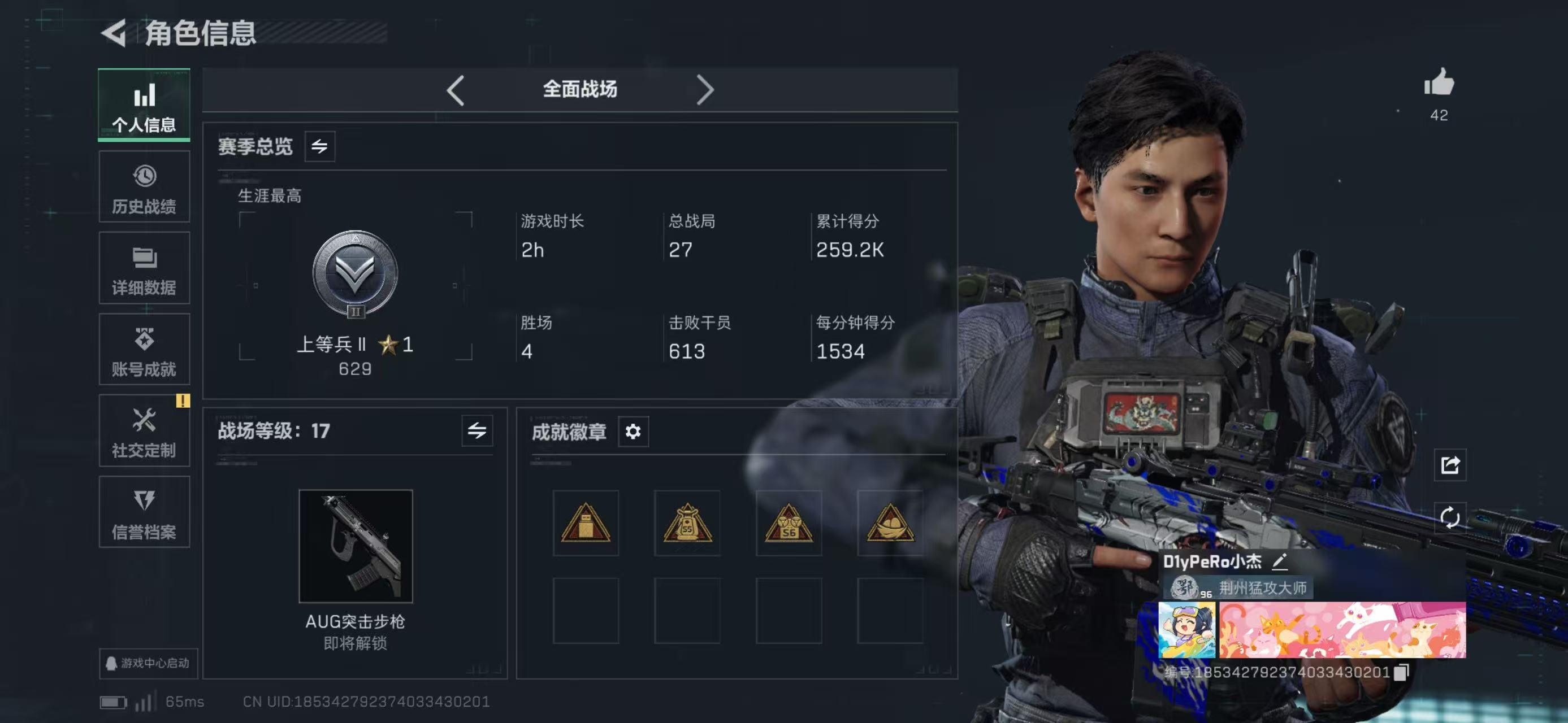 总资产177.5M,哈夫币 1179.92K,战场等级:17 列兵,行动等级:60 黑鹰,角色皮肤6