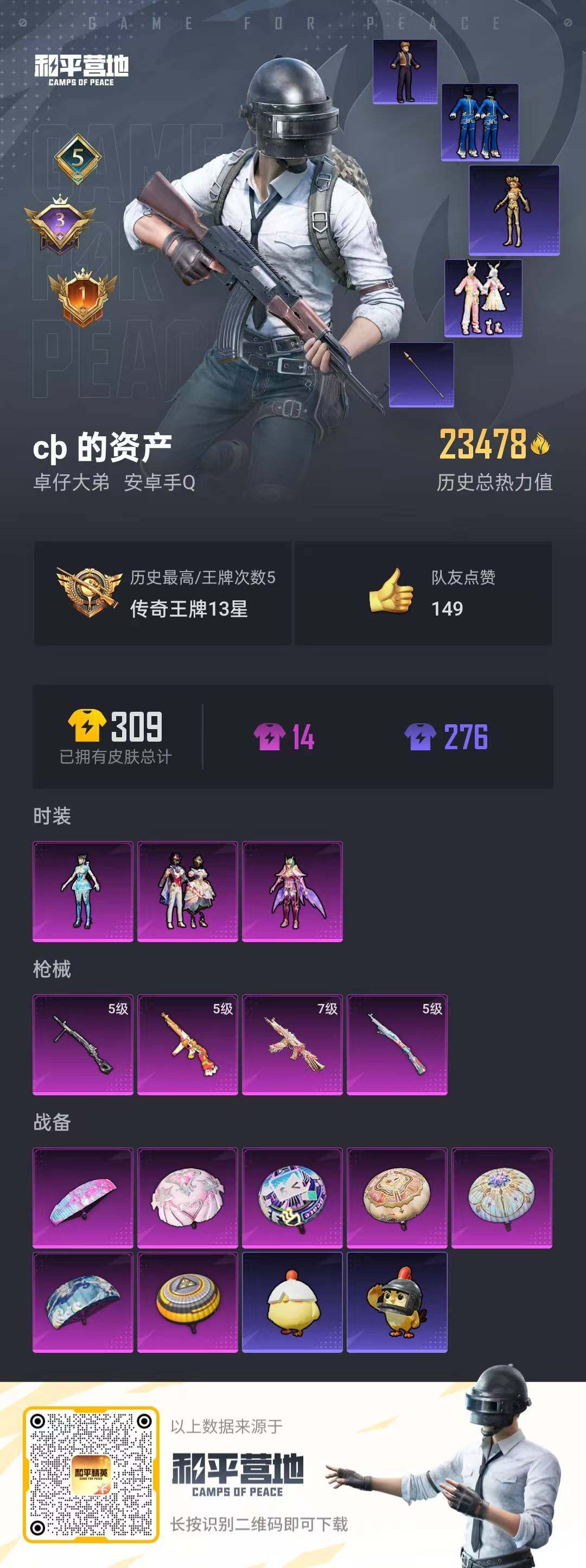 3粉装-4特效枪-23478热力值-5王牌印记-53套装-93枪皮 连体火影V