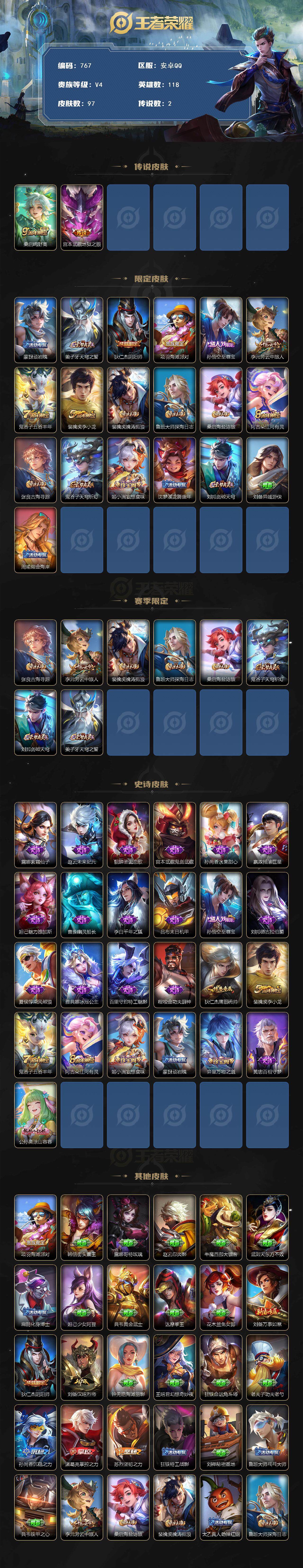 1915075 王者荣耀账号 安卓Q-V4-最强王者段位-118英雄-97皮肤