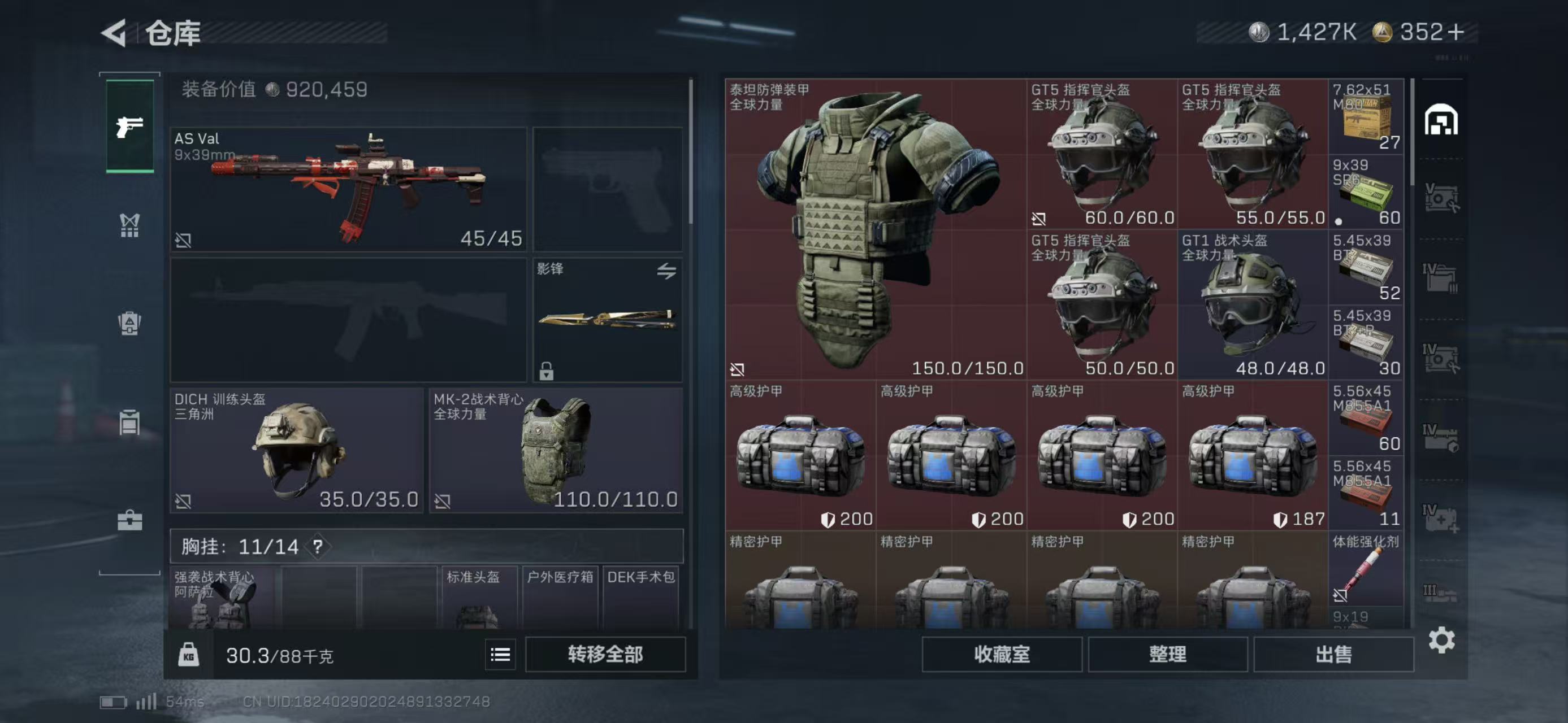 hssjz530 总资产156.78M,哈夫币 1427.14K,战场等级:50 上等兵,行动等级: