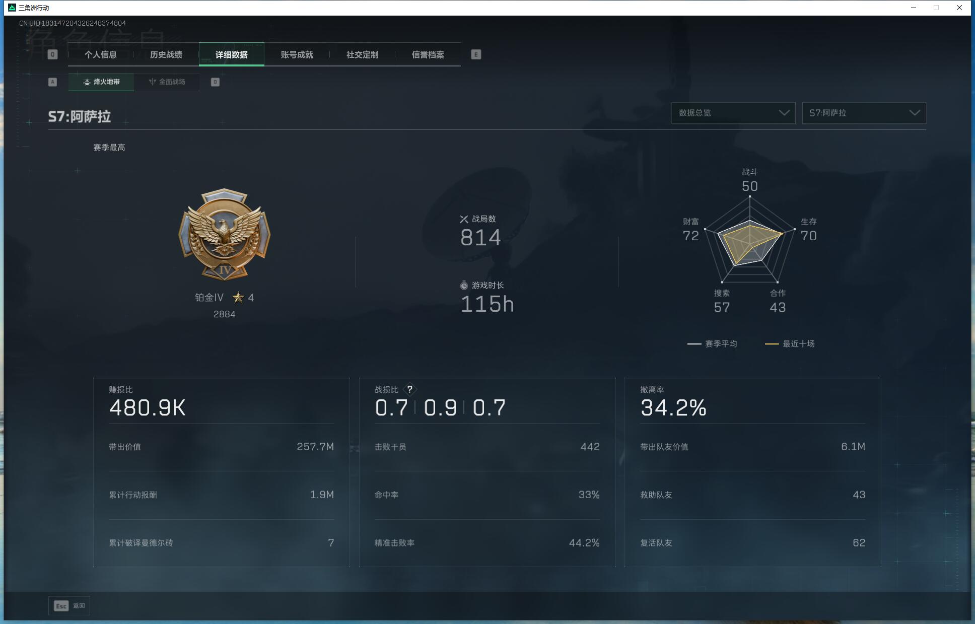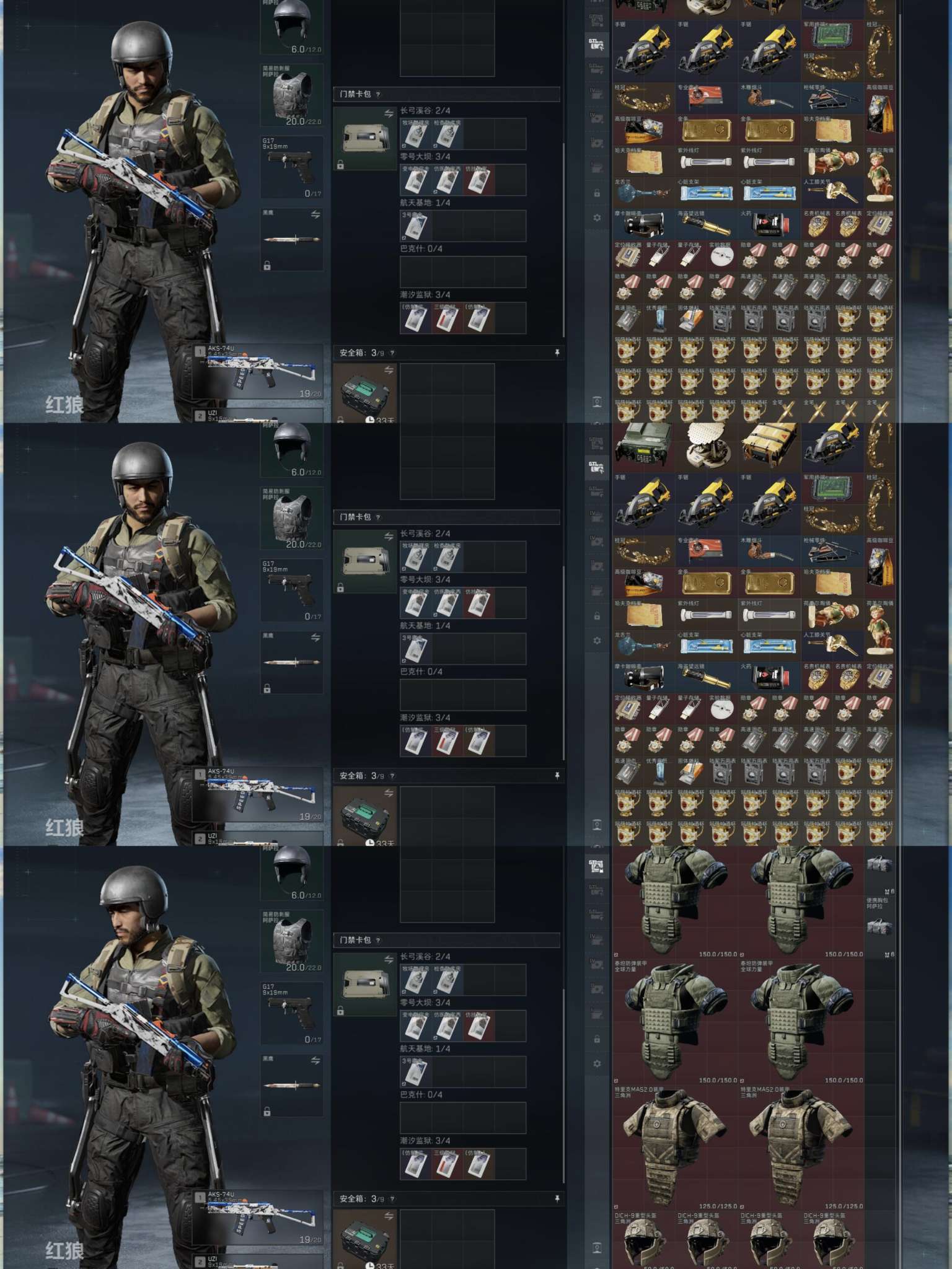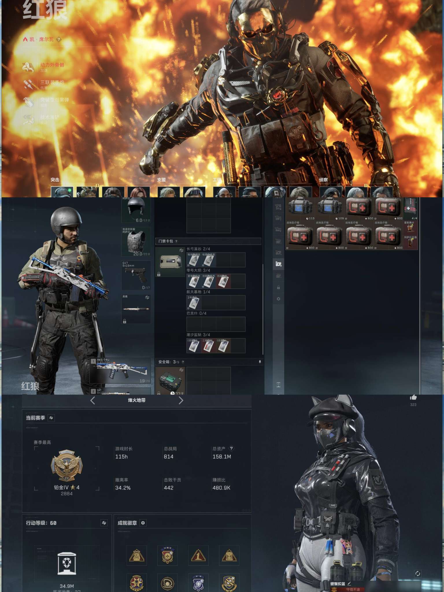 X5390/Q区/可排位/总资产158M/哈夫币1000W/行动等级60/战场等级50/红狼蚀金玫瑰