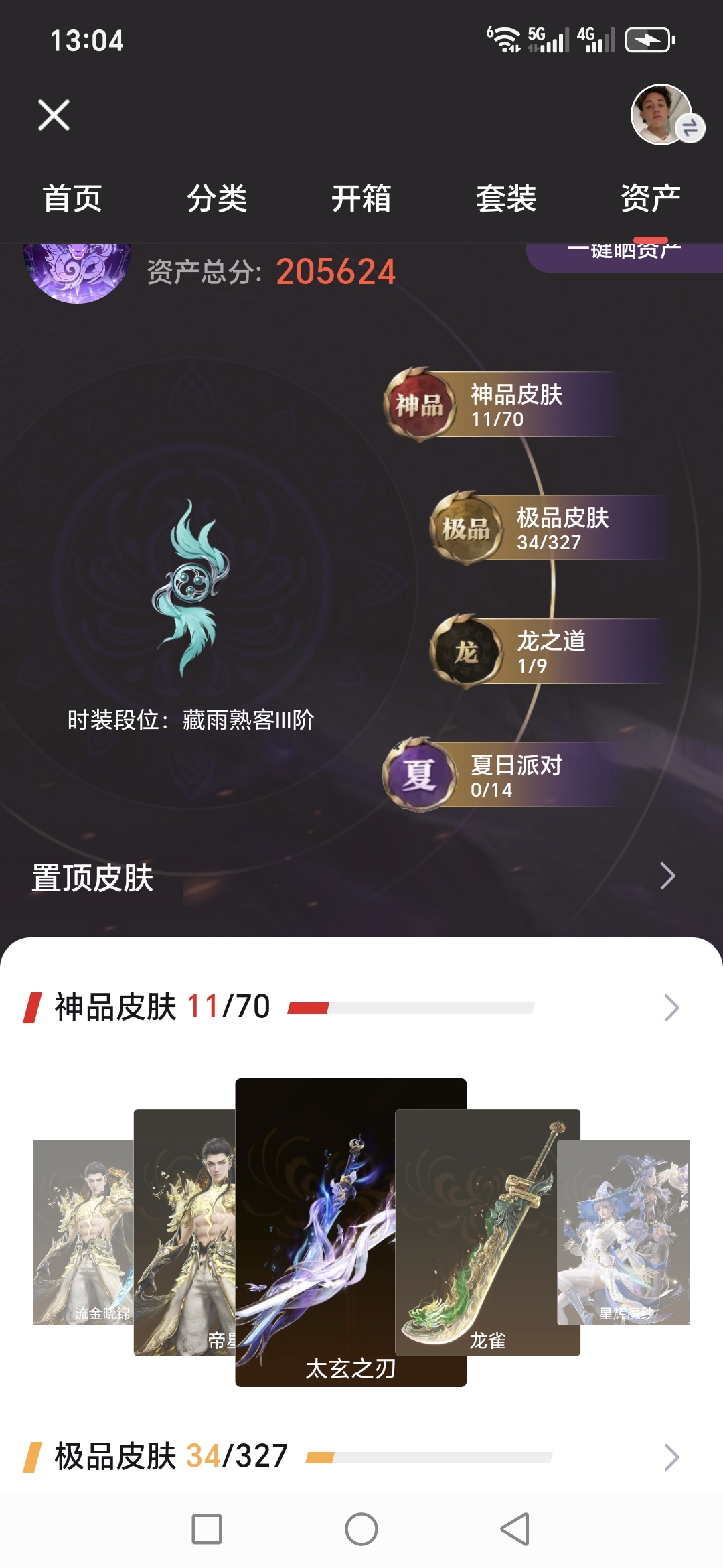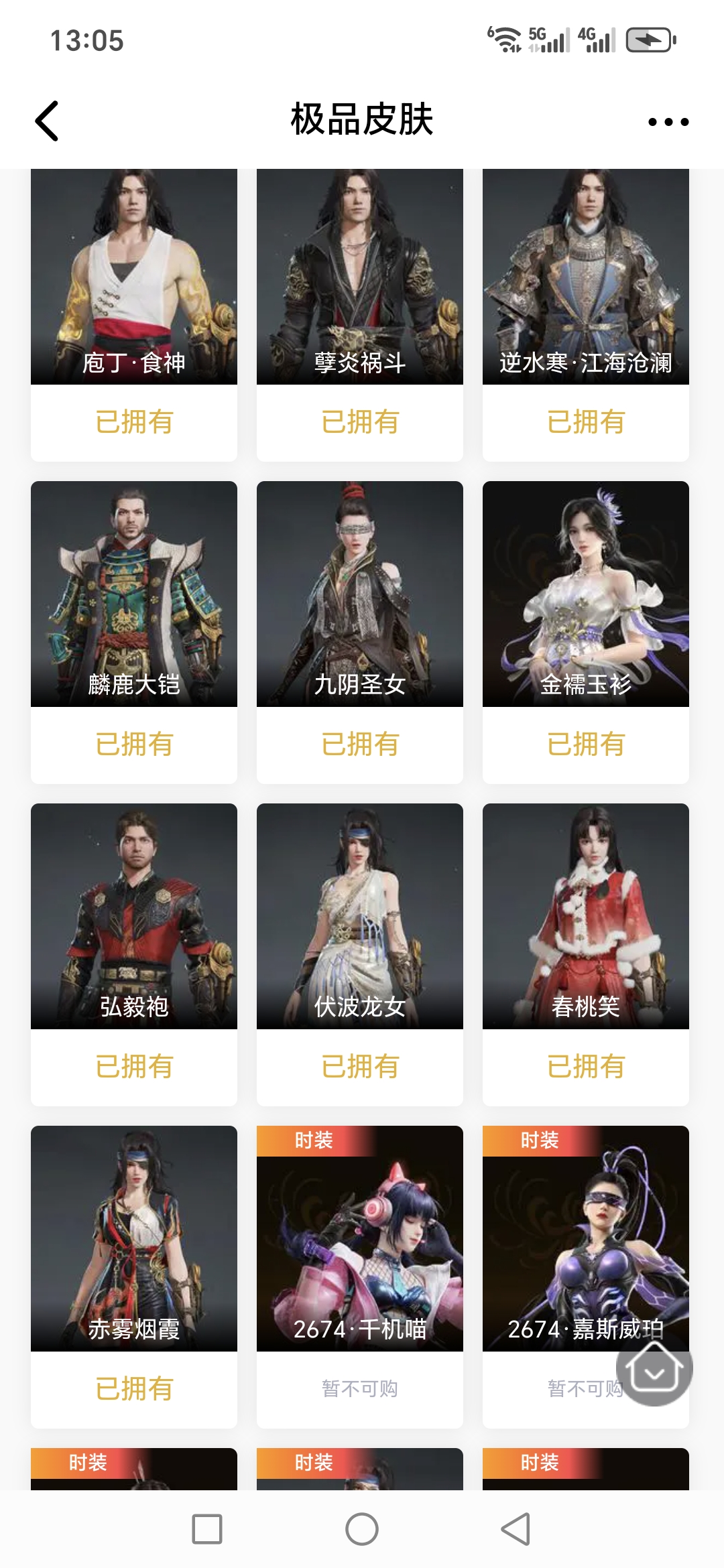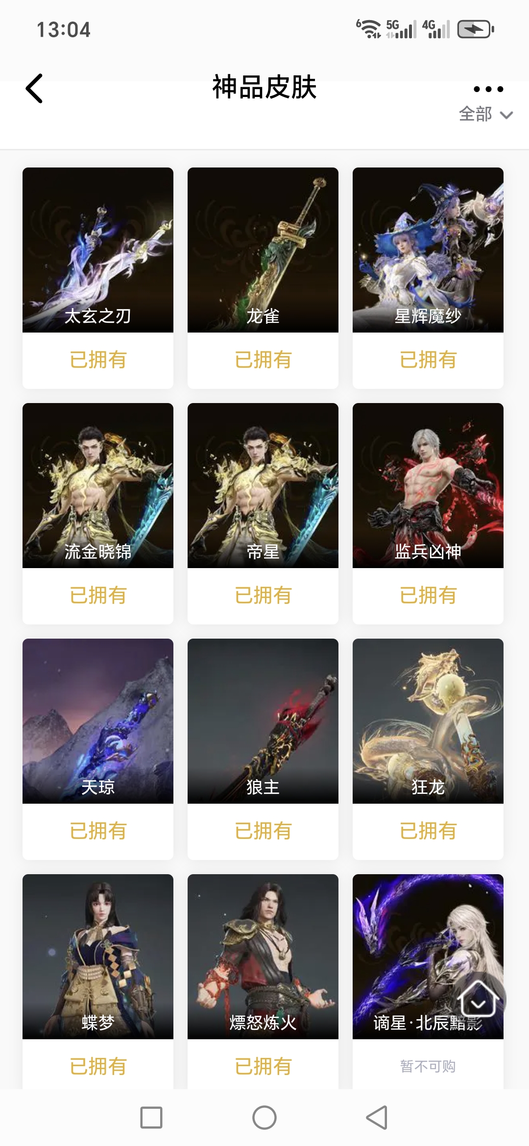 【极品皮肤】天虹咏 赤焰战灵 金财聚辉 开辟鸿蒙·金戈止 封神录·申公豹 封神录·姜子牙 观山海·獬豸 梨园传奇·柳生 楚韵九歌·山鬼 楚韵九歌·湘夫人 天工奥妙 斗罗大陆·唐三 观山海·腓腓 九骊之君 追猎 御宅罗梦 新倩女幽魂·瑶光沐月 庖丁·食