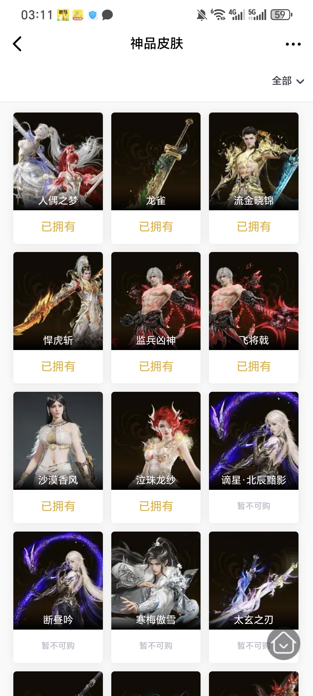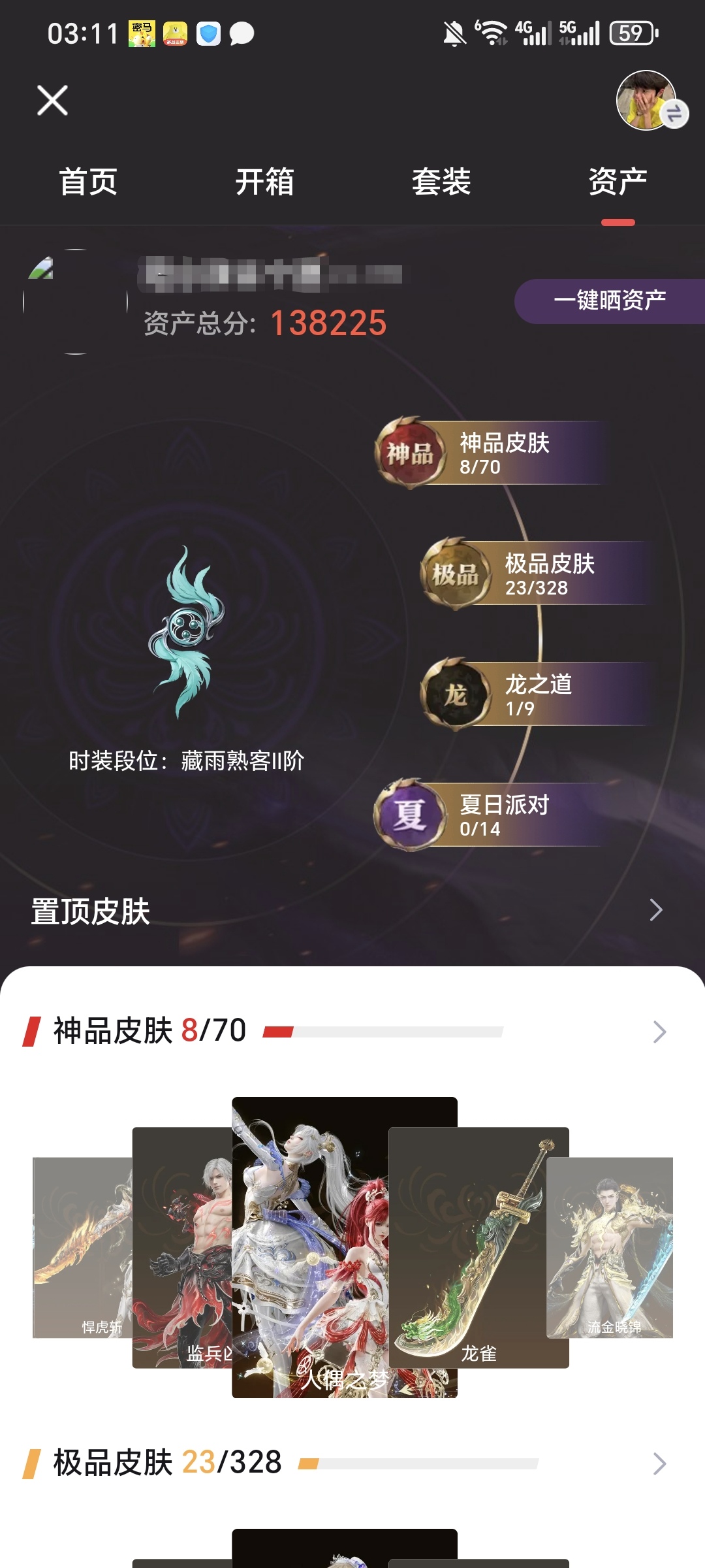 8红 23金 1龙之道 人偶之梦 悍虎斩 飞将戟 监兵凶神 换绑时间12