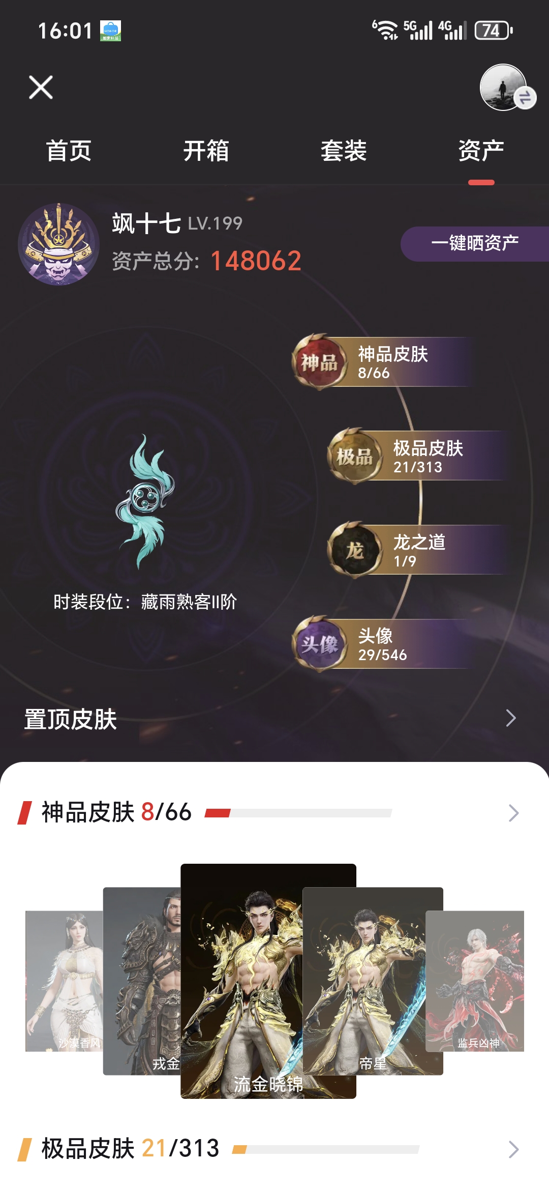 【游戏等级】199 8红 21金 1龙之道 监兵凶神 帝星 暮光胴丸