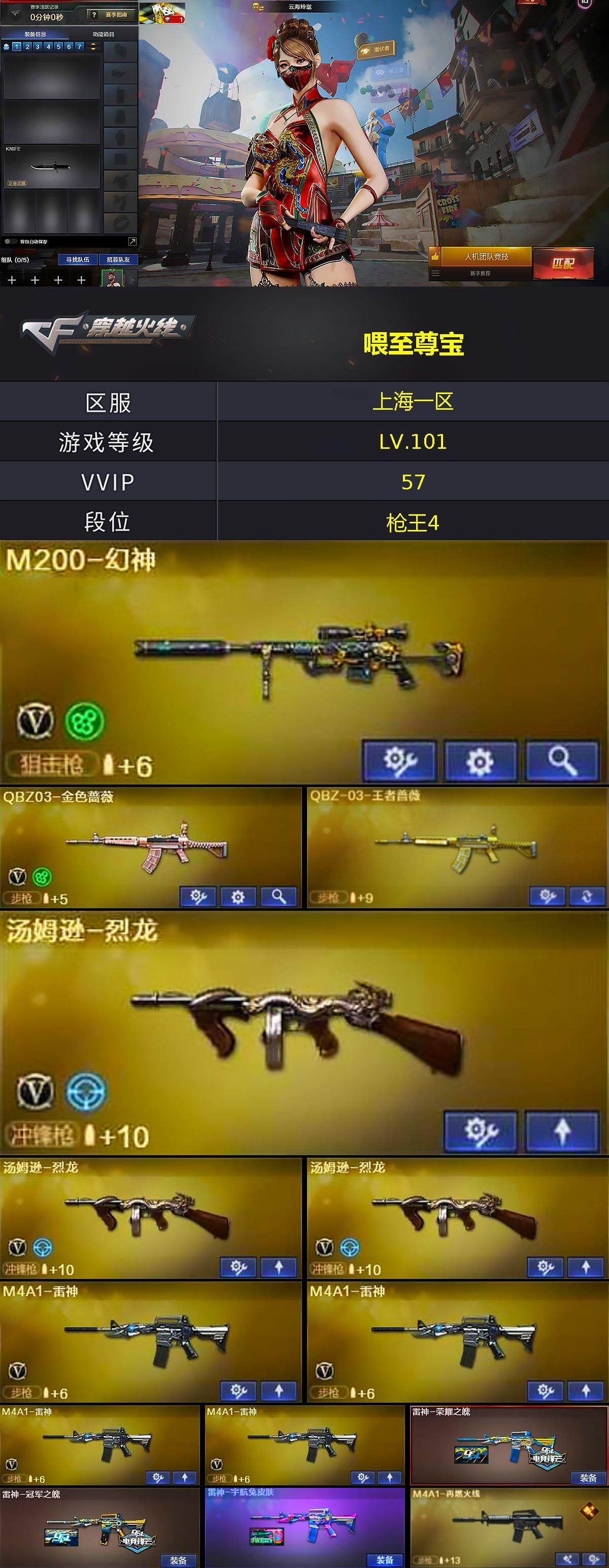 【热门武器】:QBZ03-金色蔷薇,M200-幻神,QBZ-03-王者蔷薇,M4A1-黑骑士,汤姆逊-烈龙*3,加特林-炼狱*2,沙鹰-修罗*3