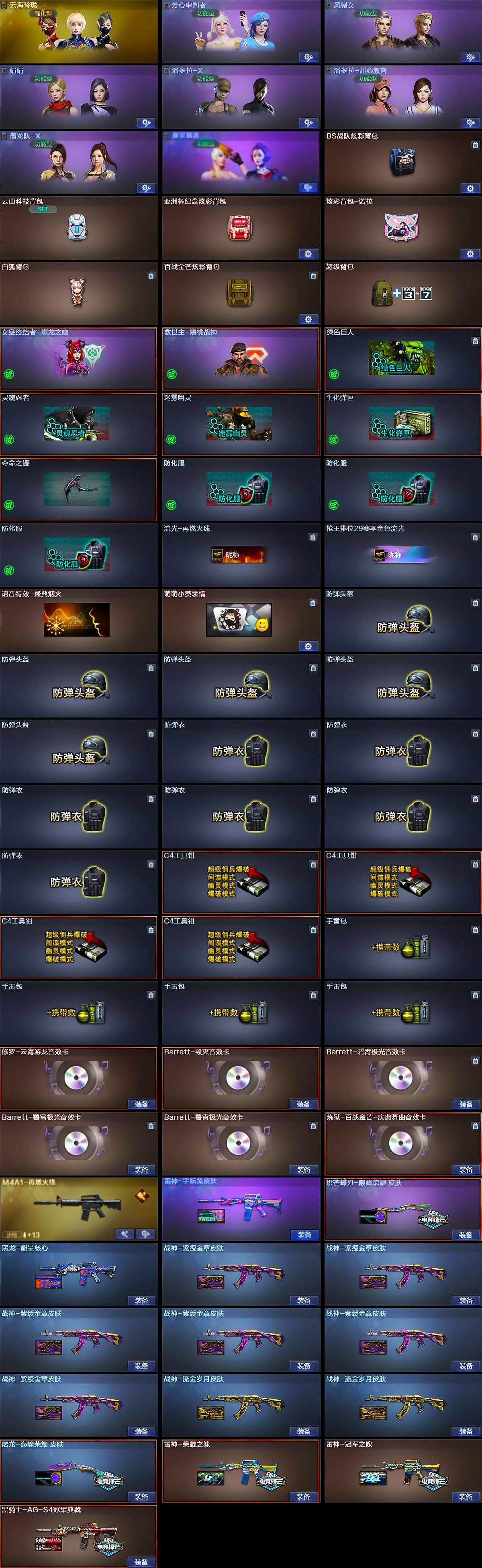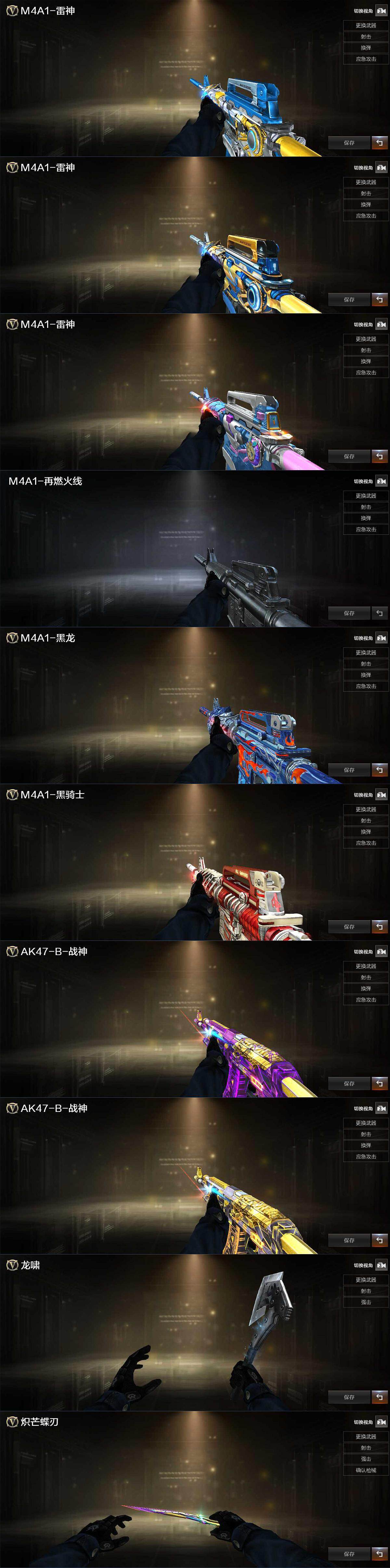 【皮肤】:雷神-荣耀之魄,雷神-冠军之魄,雷神-宇航兔皮肤,M4A1-再燃火线,黑龙-能量核心,黑骑士-AG-S4冠军典藏,