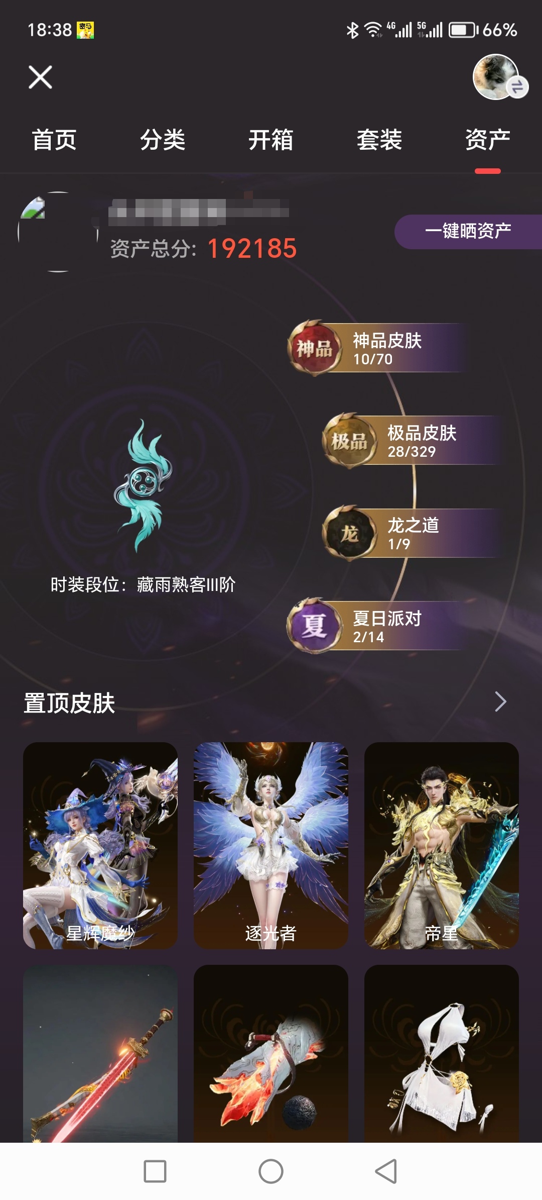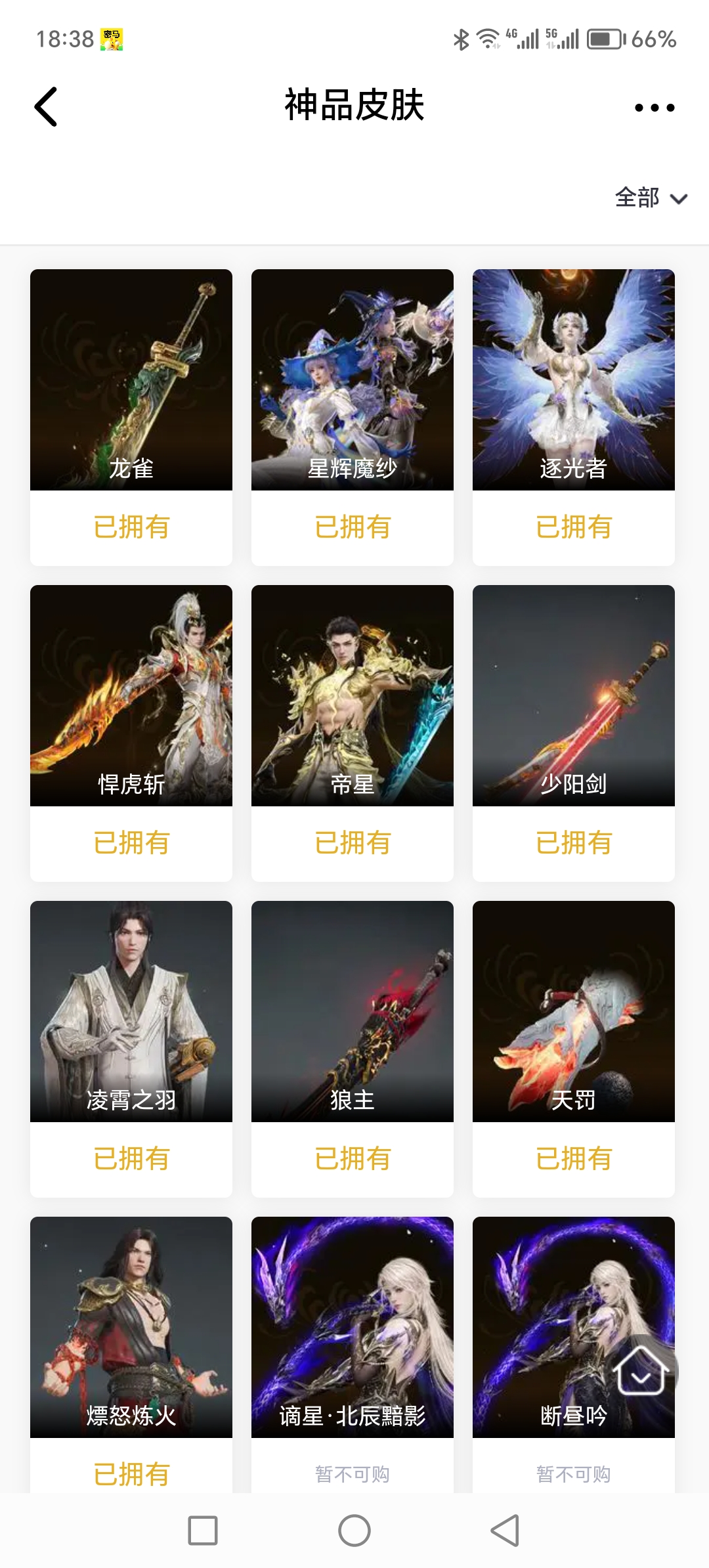 【神品皮肤】龙雀 星辉魔纱 逐光者 悍虎斩 帝星 少阳剑 凌霄之羽 狼主 天罚 熛怒炼火