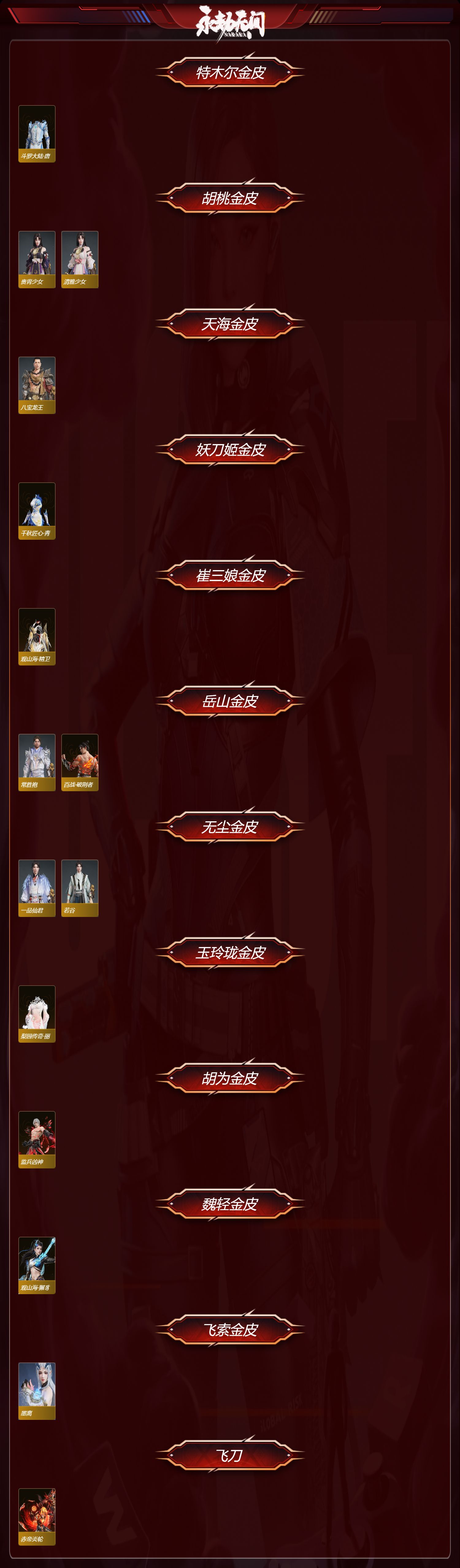 【极品皮肤】天虹咏 寿竹云春 封神录·申公豹 观山海·獬豸 斗罗大陆·唐三 若谷 清雅少女 贵胄少女 常胜袍 八宝龙王 一品仙君 畲族·凤凰装 新魔杰·斩魔天将 古冢行 梨园传奇·丽娘 观山海·精卫 千秋匠心·青枝瓷 百战·破荆者 不良人·李星云