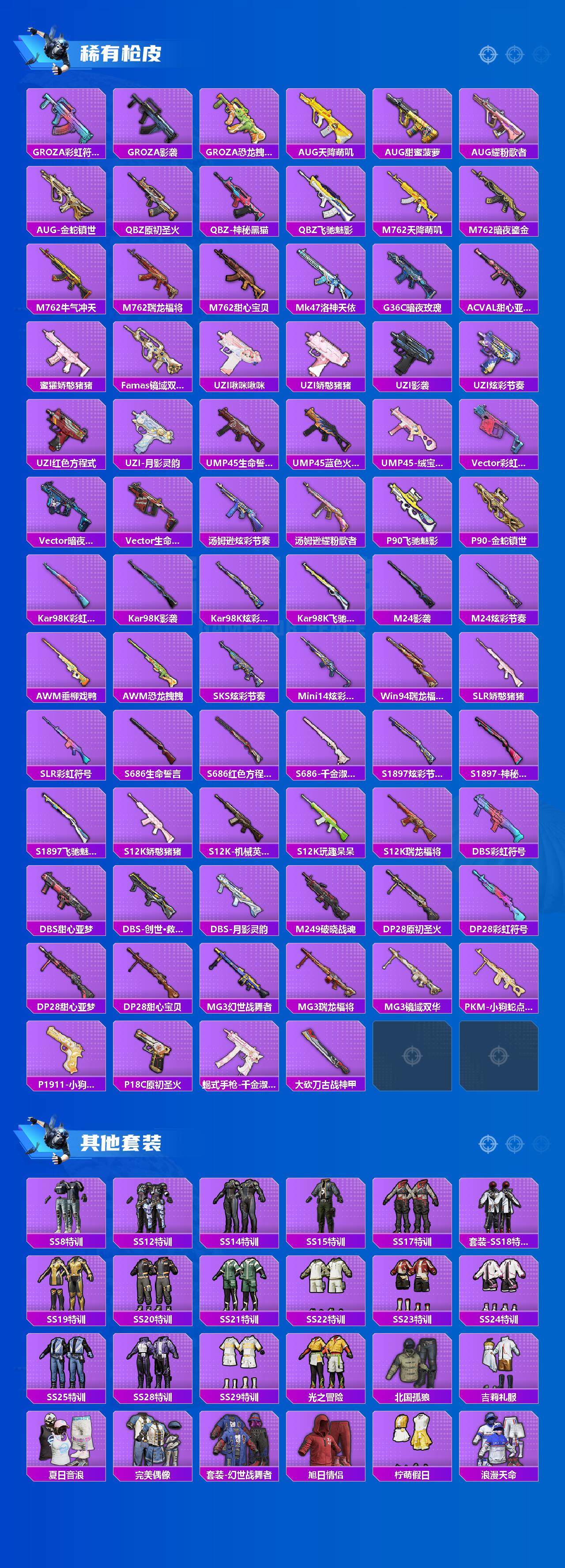【8249】8粉装-6特效枪-2载具-2粉色飞行器-64280热力值-13王牌印记-132套装-188枪皮【热门品类】:都市猎人