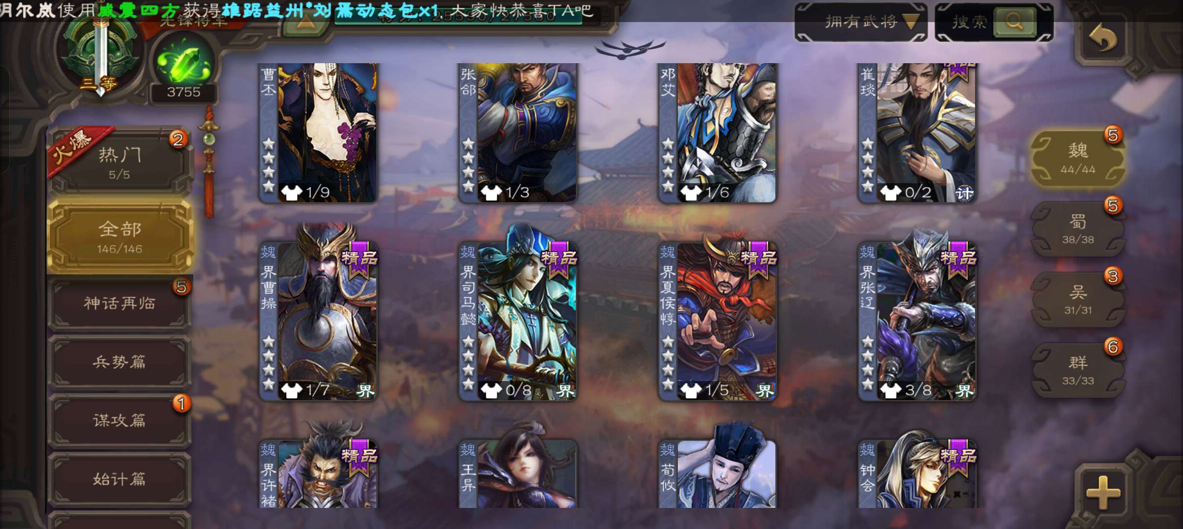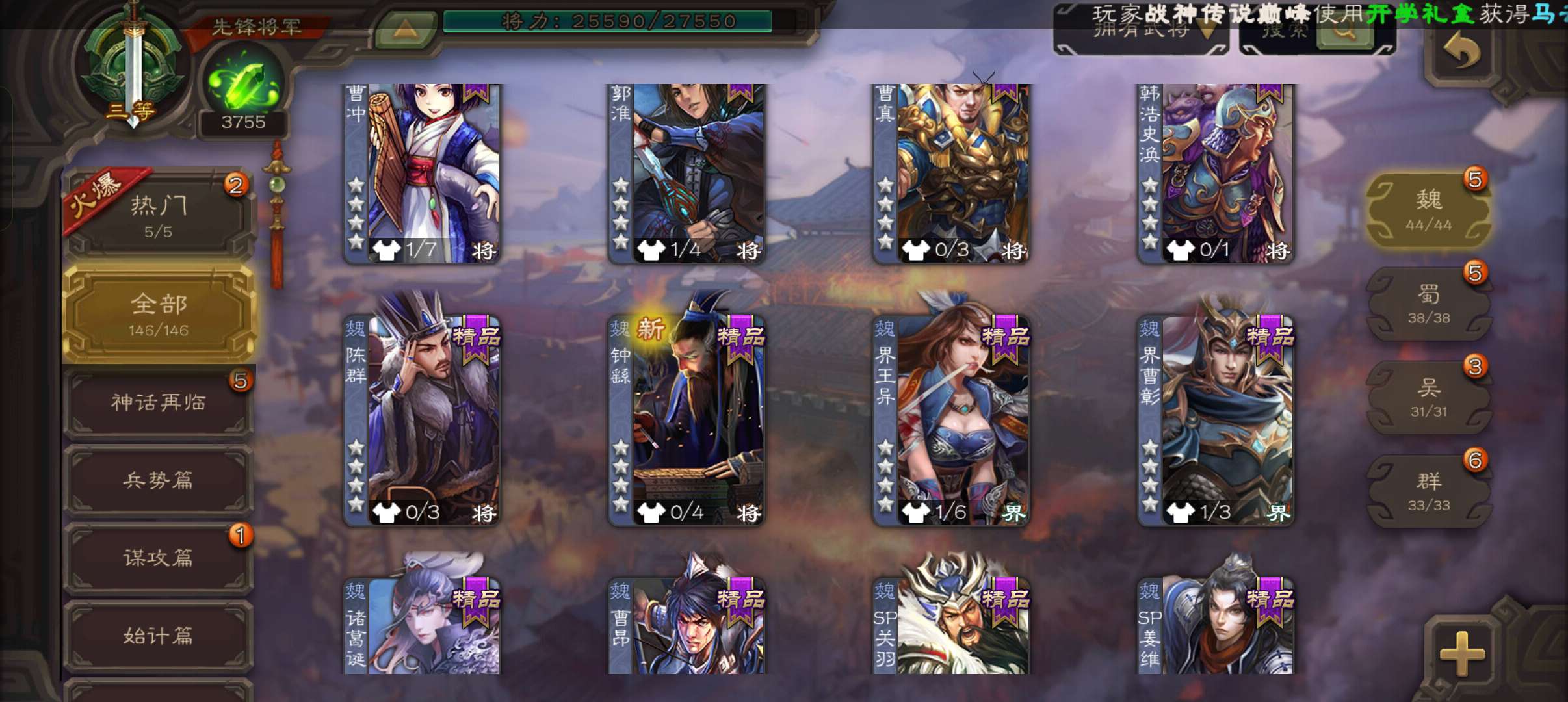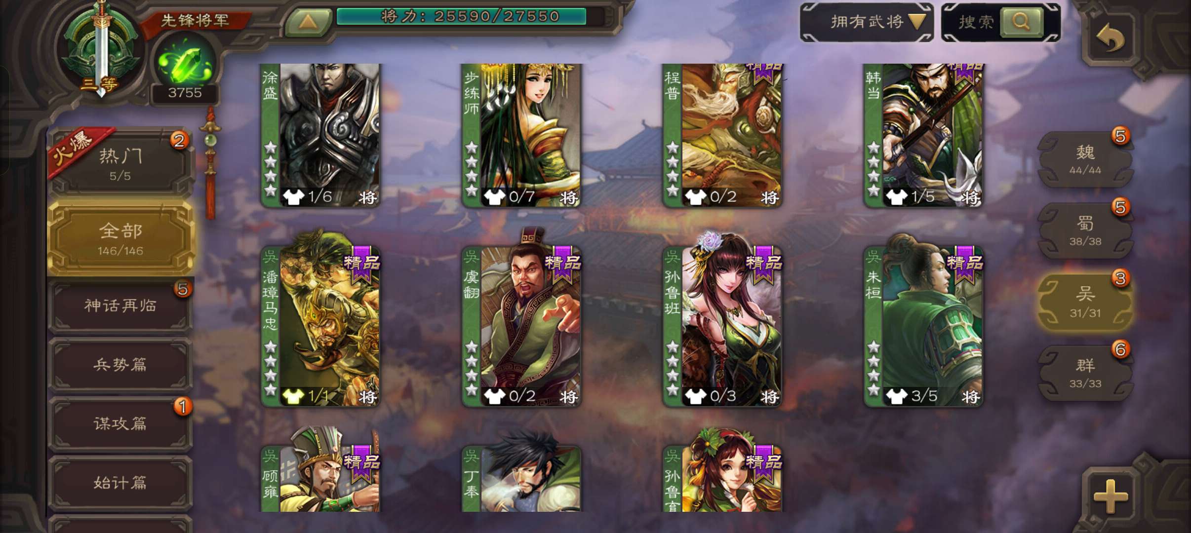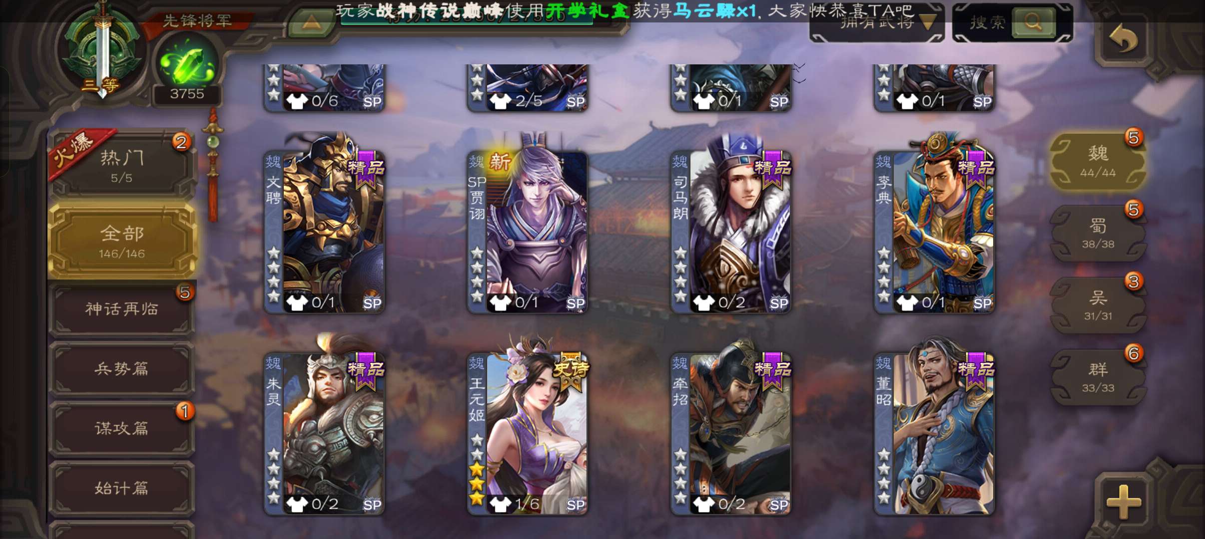 19.6宝珠(准大宝)3750将魂,回廊动态王元姬谯周双史诗先锋,动态界陆逊谋韩当谋小乔146将