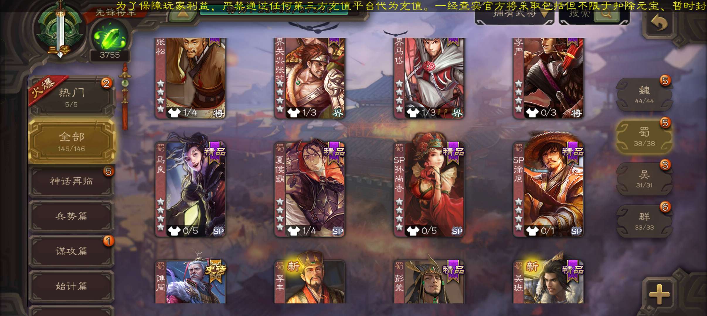 史诗武将数量: